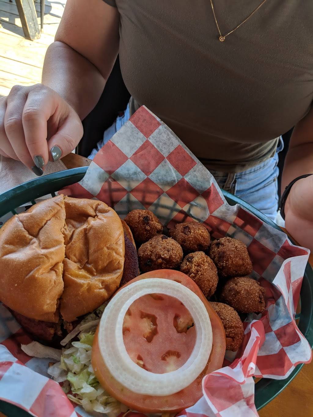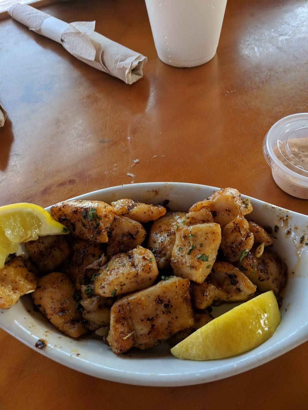 Stopped in for a bite to eat and some adult beverages, the $2.50 shrimp cocktail for and appetizer was delicious. Then we moved on to the grilled fish bites and the blackened fish tacos, and some french fries they were AMAZING the fish was fresh and seasoned perfectly !!!!! Nice bar setup on the water with some good music playing in the background sorry no pictures we were to busy enjoying our food. Our new favorite bar in Little River we will definitely be back. ????????????????????