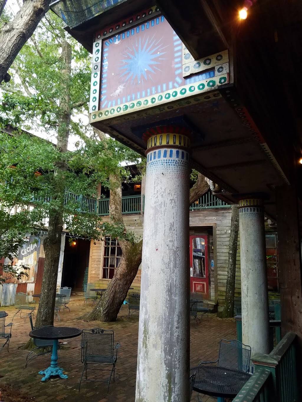 The outdoor deck with live music has great atmosphere. It's free to come in and has lots of open seating , which is quite comfortable. Good drinks. The food is quite lacking, the restaurant seems to have much greater selection and quality. Aside from that we'll be coming back to enjoy live bands.