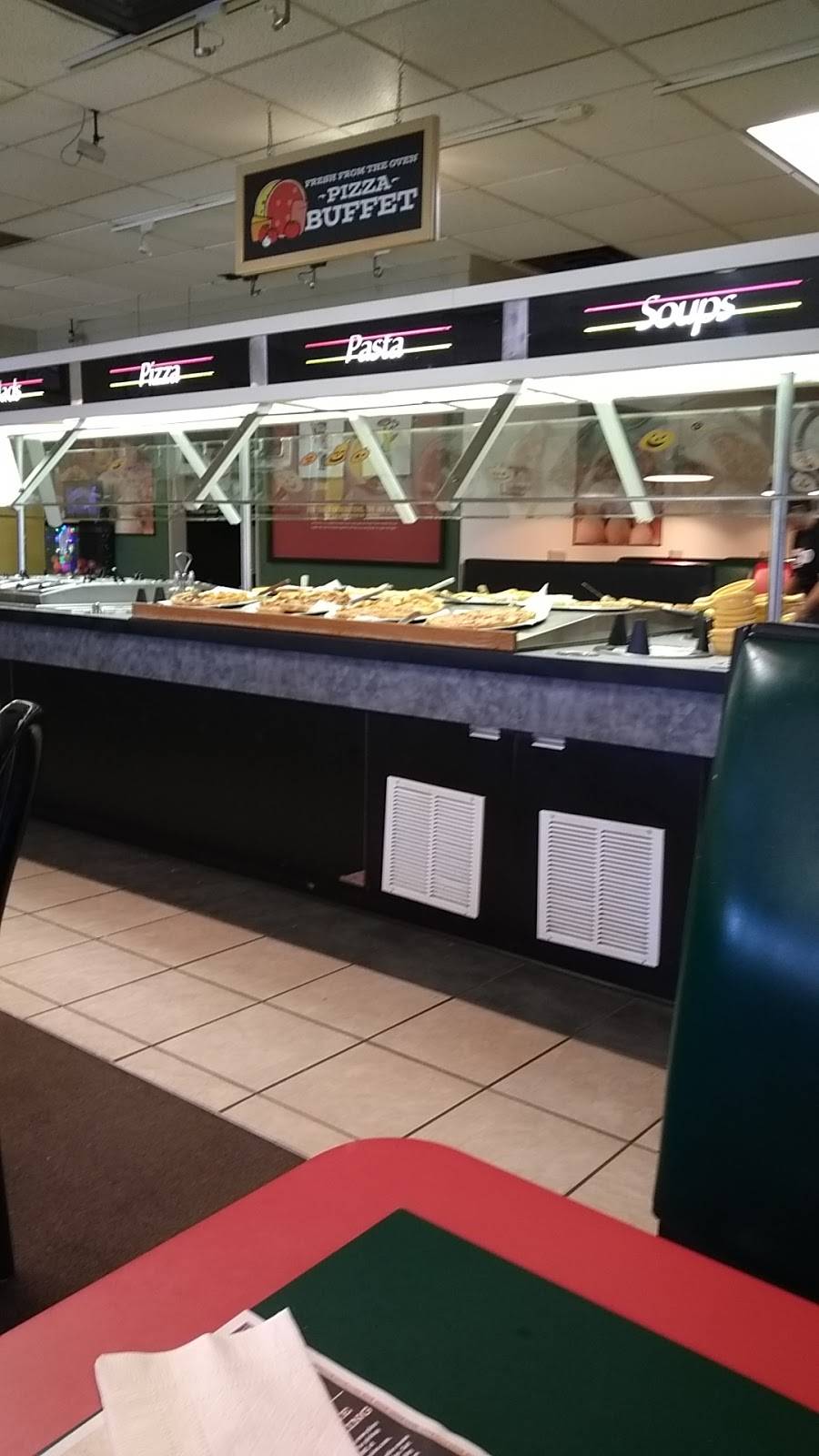 It’s good, if you get it take out. When trying to eat the buffet there, it’s never stocked. They always run out. Then, when they do get a couple pizzas out they get gone really quick, because there’s been none there. I learned to just order it to go.
