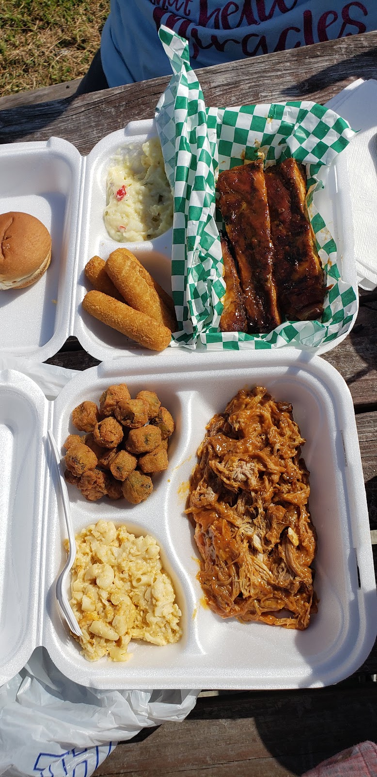 This was.so good! We had 2 bbq plates with mac and cheese and hush puppies as our sides. Bbq sandwich was huge, tender and full of flavor.. Mac and cheese is home made and delicious. Service was friendly. We'll be back for sure, and I'll try the hash and rice.