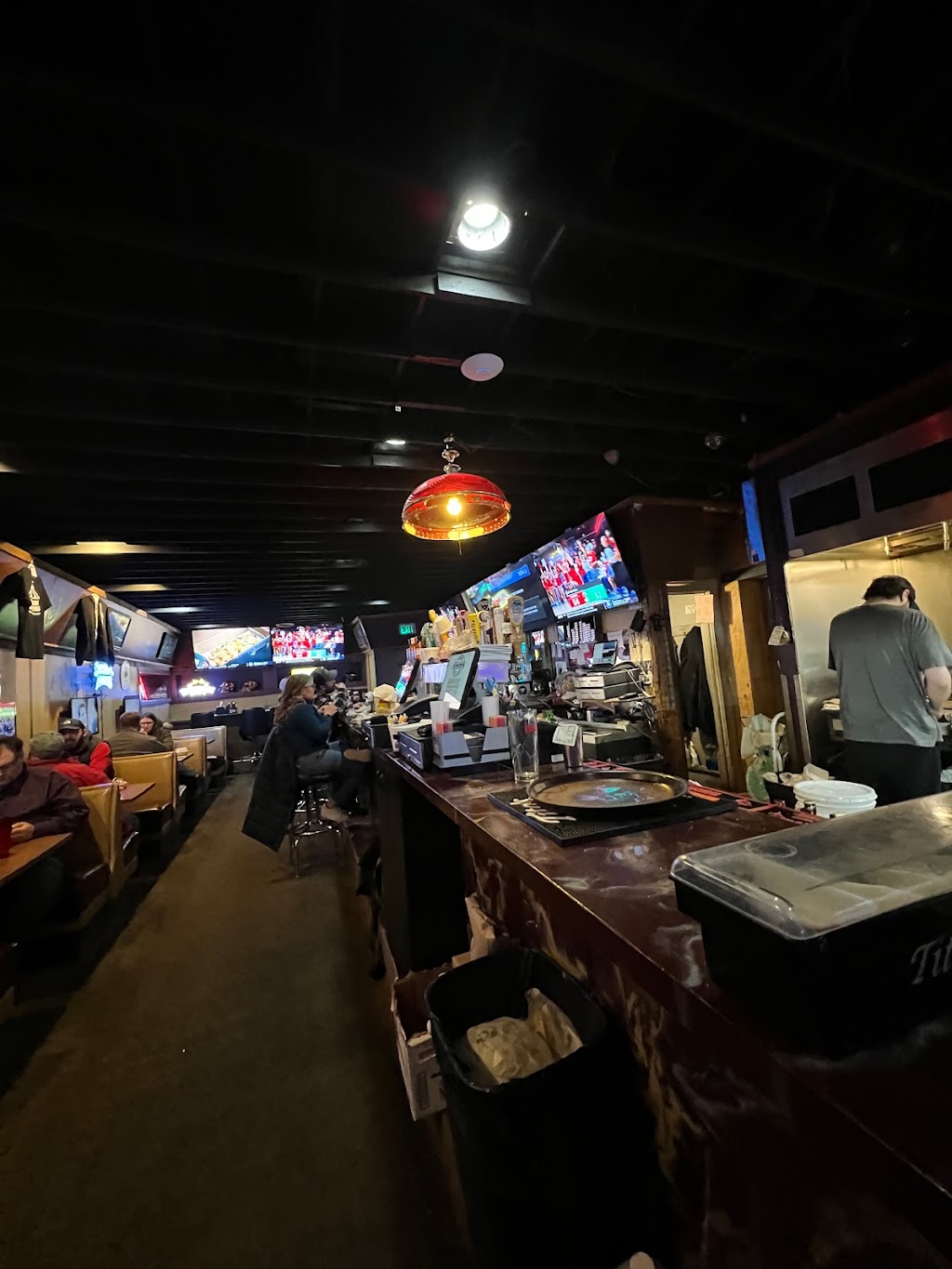 Fairly normal sports bar, but a lot of TVs. Staff very friendly. Some good beer on tap options. Had a weird pickled vodka that made a fantastic Bloody Mary. Didn't eat, but kitchen is open fairly late, and looked good.