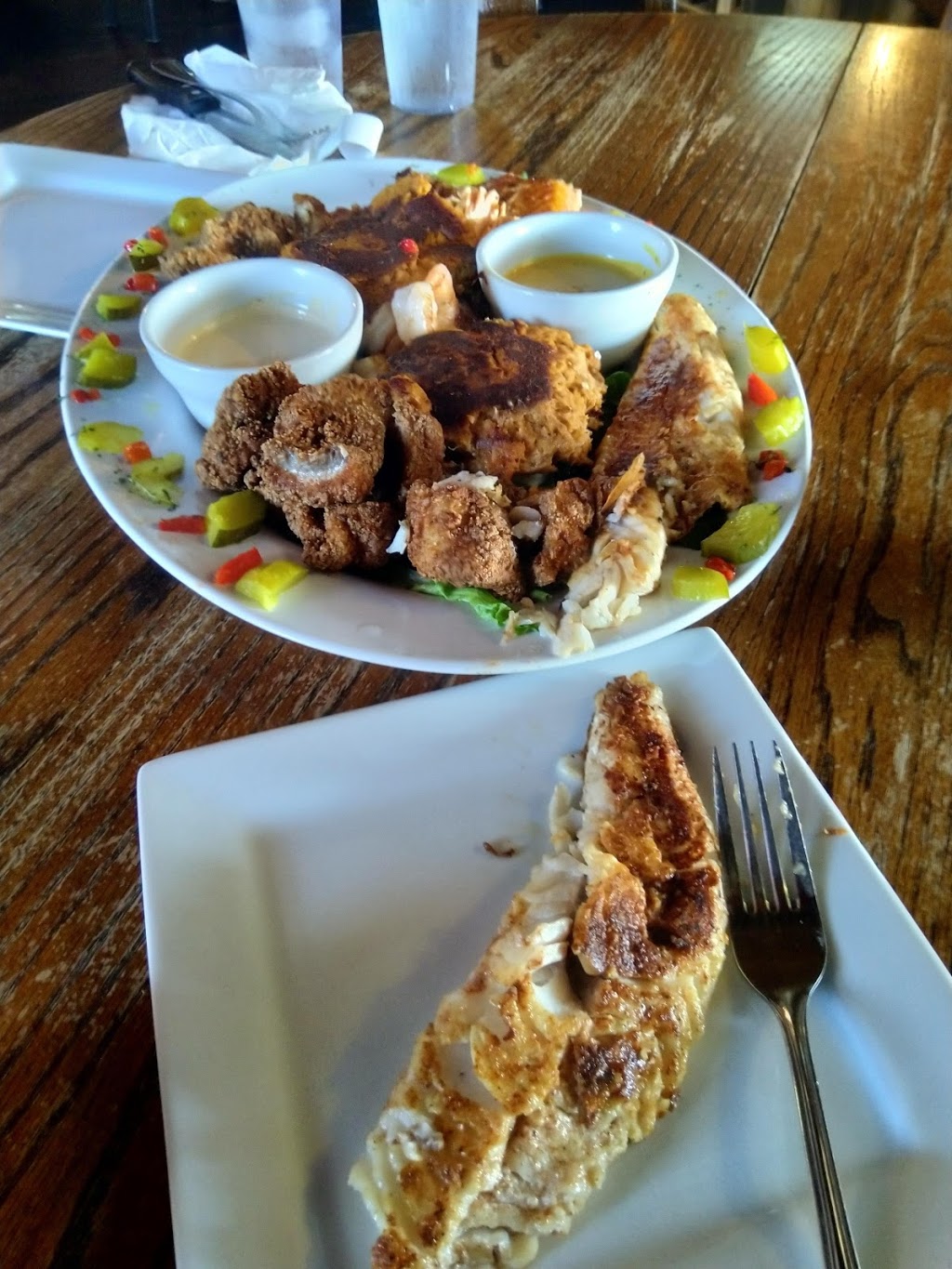 The name doesn't do this place justice, if you like Cajun food its amazing, if you just plain like food its amazing. We went on a Friday night, you'll most likely need reservations for Friday as they have live music from the Steve show which is also great. Interacts with the crowd and plays good music so if you want a quiet night out you'll probably want to choose a different night but who wants that! We got the fried bread for the appetizer since my 3yo daughter was with us. She loved it as did we. We ordered the seafood platter as we wanted to try most everything. I personally don't normally like salmon but EVERYTHING on this platter is amazing. Try this place and I guarantee you'll be back!