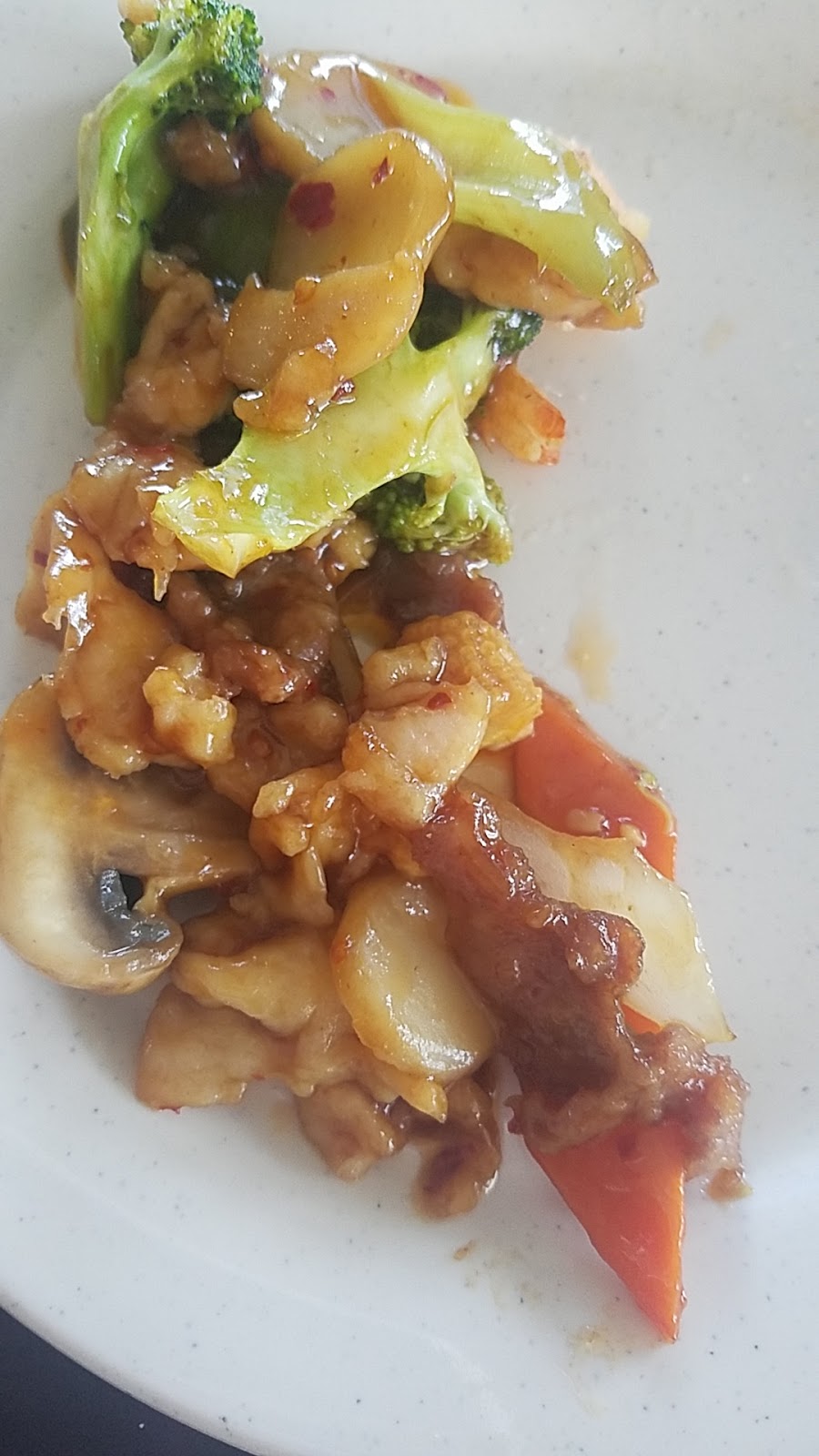 Fresh crunchy vegys, huge pieces of shrimp, everything was fresh an tasty. Nothing was over cooked or mushy.