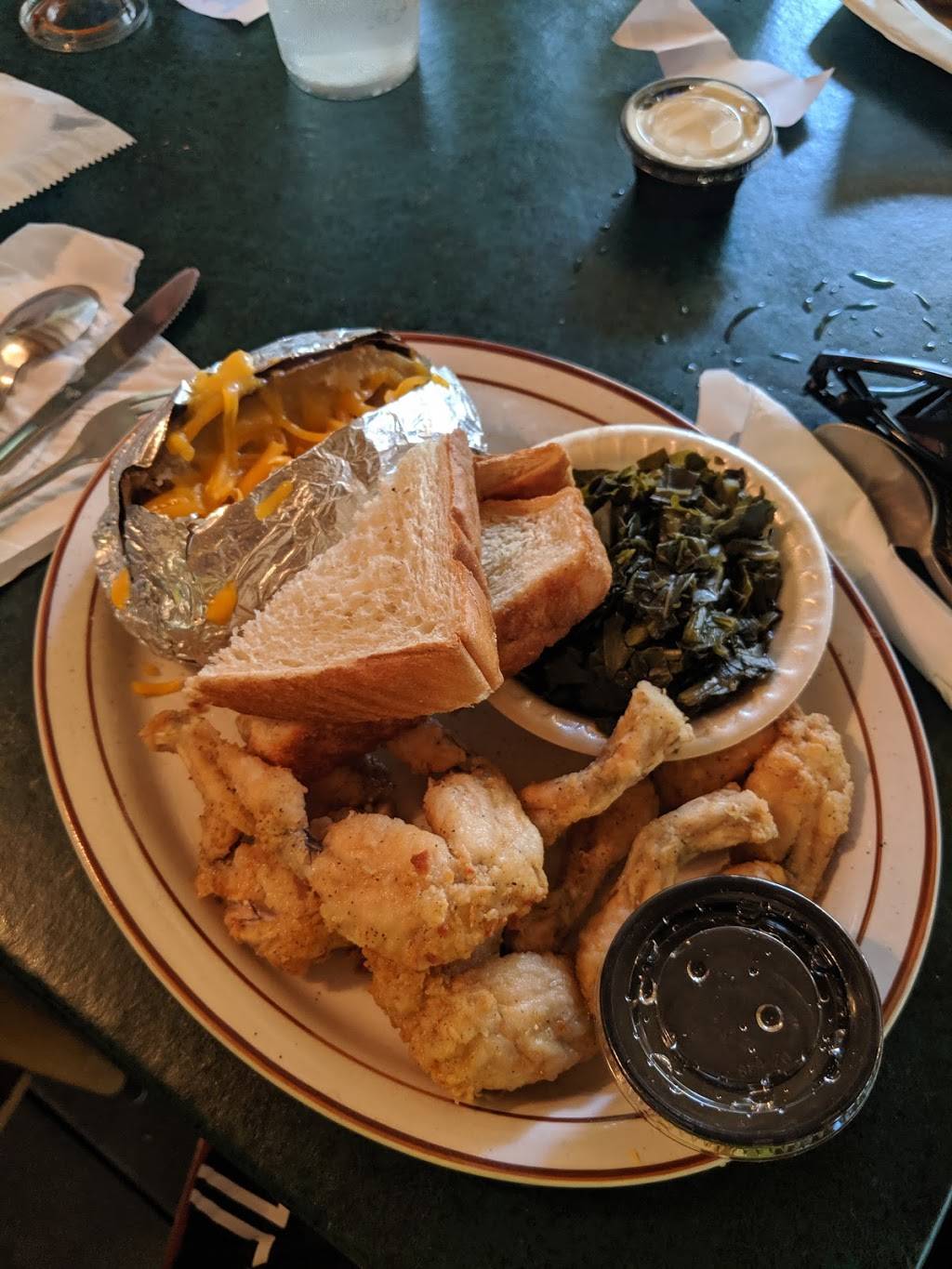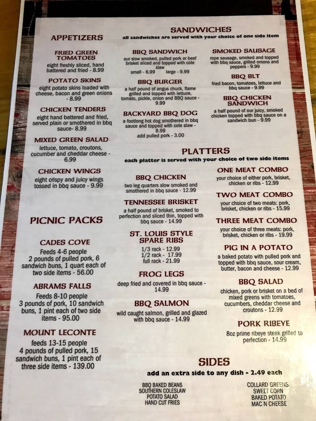 Great food and service. We enjoyed our outing on the Little River, and the food was delicious. The baked beans had a kick, just the way I like them, and the BBQ sauce was just enough. Highly recommend.