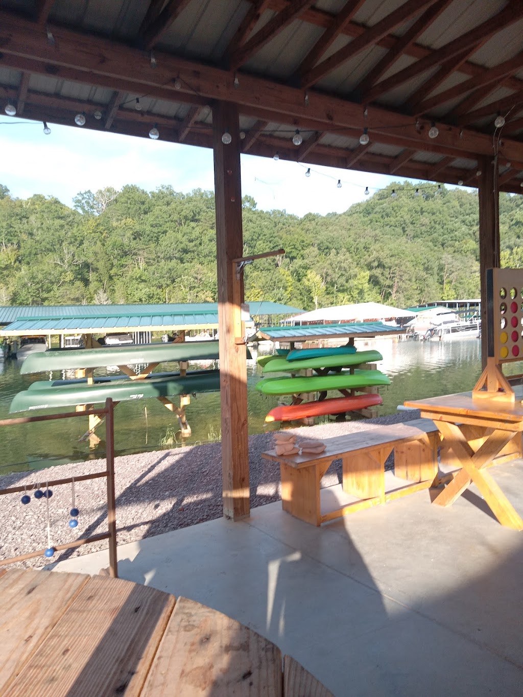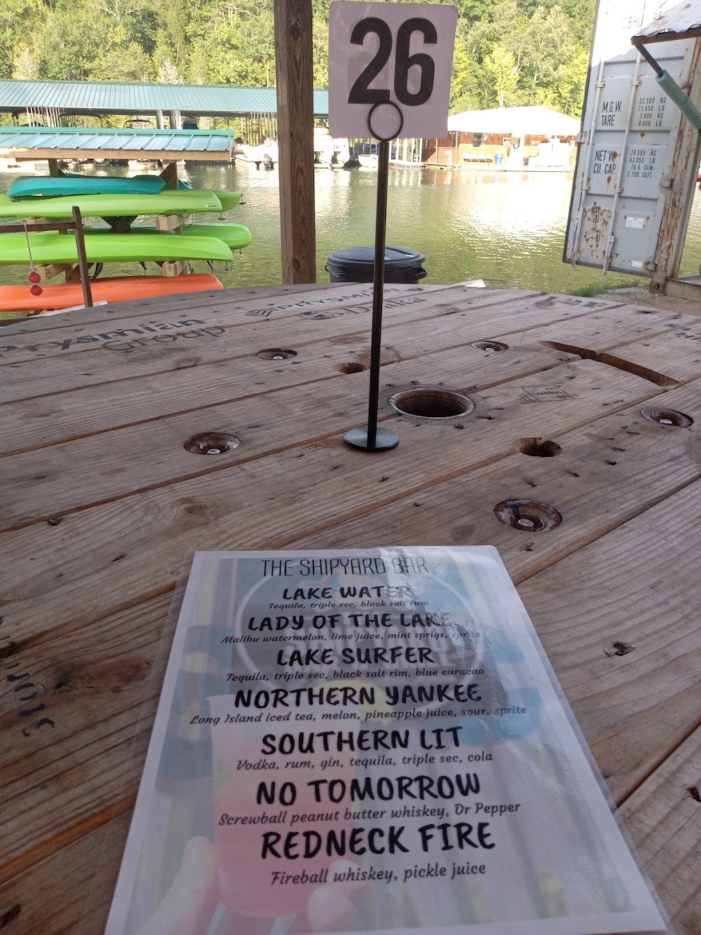 First time here. Outdoor seating only. I went on a Saturday evening about 7pm. The employees are very nice. The menu has variety of hamburgers, hotdog, crinkle fries,, mozzarella cheese sticks,, fried pickles, chicken tenders, fish,. Salad, & coke products to drink. Beer or mixed liquor drinks (if that's what your in the mood for). I ordered a salad with ranch dressing. It was fresh, crispy, & tasty. I loved the atmosphere here. A live band sang some nostalgic songs. The Lake water was nice to look at. I loved seeing the people on their boats coming & going. Everyone seemed to enjoy themselves. Definitely a place I would eat at again. An overall fun time.