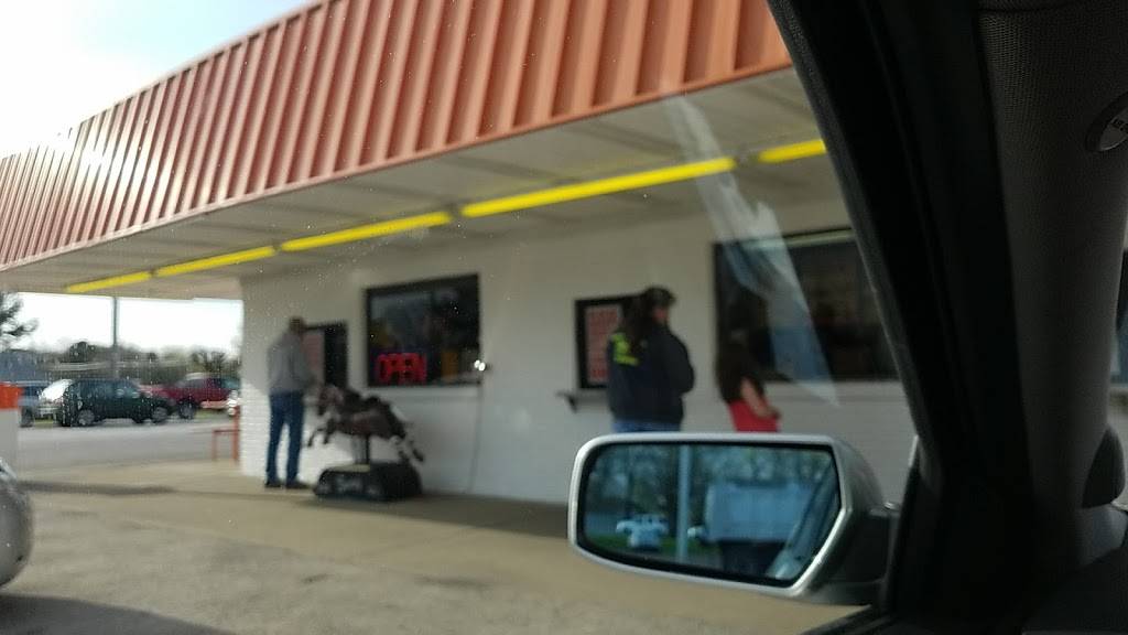 Right on the main road. A large parking lot. Half of it is gravel and half of it is paved. If it's been raining watch where you park there maybe some puddles. You stand up outside and order at a window. They fix the food fresh. you take it back to your car and eat in your car. A local Hangout area for quite a few years. I have been here before and will come back again. I highly recommend this to anyone. They are open late at night. Thank you. A great place to park and eat your food and watch the cars go back and forth. A small town and all the locals will ride back and forth all night long.