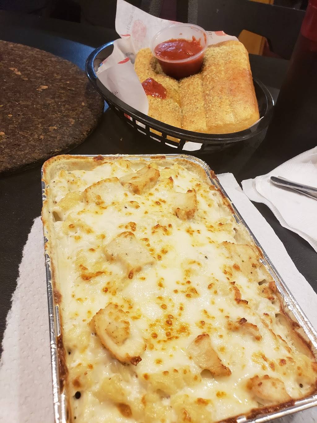 Pizza, bread sticks and garlic knots all were fresh. Wait time was between 15-20 minutes. Price was very reasonable for the amount of food that was ordered. Overall good customer service and fast order times.