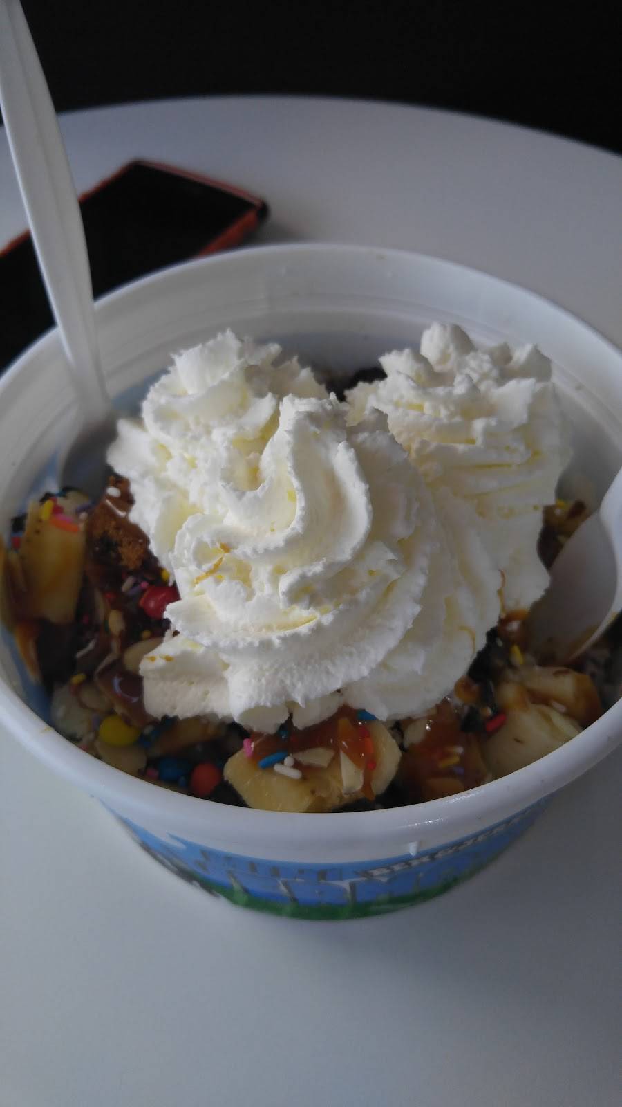The Banana split was delicious. This place is really expensive. Banana split and a bottle of $12. I guess you are paying for the novelty of Ben and Jerry's. Really nice employees.