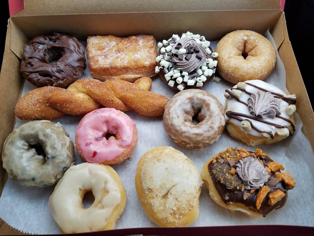 Excellent and overwhelming variety of donuts! Definitely prefer yeast over cake—the strawberry lemon cake donut was a touch too sweet. I did not like the strawberry cream cheese stuffed bear claw, tasted very artificial. But all of the yeast donuts were amaaaazing. Skip a latte, unless you only require hot milk and espresso.