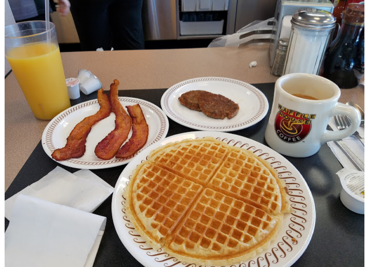 Thus location is a welcome addition to our fast food offerings. Real food made to order from the best pecan waffles to hearty steak and eggs. Vegetarians have their choice of salads to eggs to waffles. Great coffee and you leave feeling full. Busy at breakfast and at start of lunch. Prices are comparable to other fast food places. Open 24 hrs. Wait staff and cook staff are very friendly and are local. Casual laid back atmosphere so don't be in a rush, enjoy your meal.