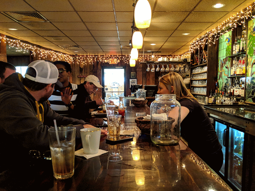 It’s gotten a bit pricier in the last couple of years. The food is amazing. The cheese bread appetizer is so good, it’s worth coming just for that. I haven’t tried very many things on the menu, but the cheeseburgers and steaks are some of the best you’ll have anywhere. There is a bar area up front which always seems busy, but I’ve never tried anything from that area, so I can’t comment on that section.