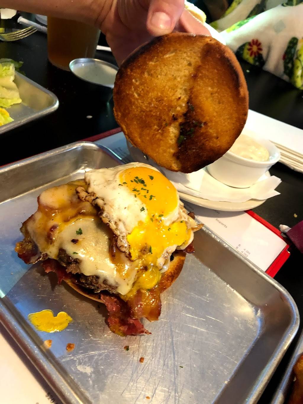 Great burgers, wings are ok, drinks are mixed right.