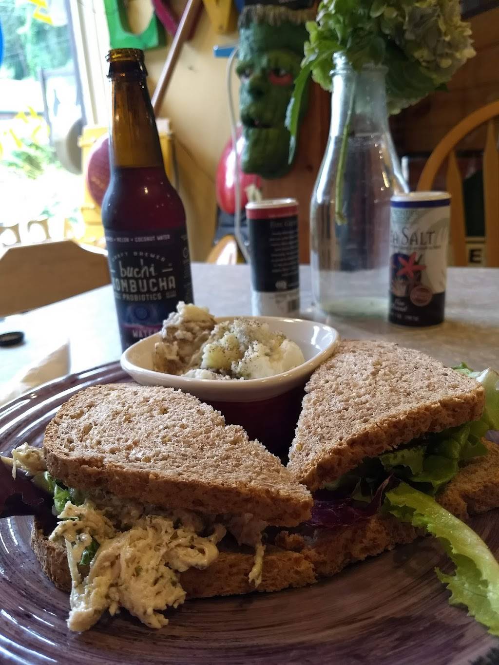 Husband and I are hooked on our whole food plant based diet so traveling is a challenge when it comes to eating out. We had a horrible experience the day before and so were delighted to find this place. The potato salad is divine. Chunky, with just the right amount of dressing and condiments--five stars. The grilled veggie wraps and the lentil burgers were also tasty and satisfying, and clean (not oily). We ate lunch there and then each took a burger, a veggie wrap, a side of potato salad and a pasta salad, to enjoy after our 5.4 mile round trip hike to Rainbow falls. The owner who served us was so nice and she did a great job packing up our lunches-to-go. And boy were we happy to have that food on hand when we got back to our car after our hike.