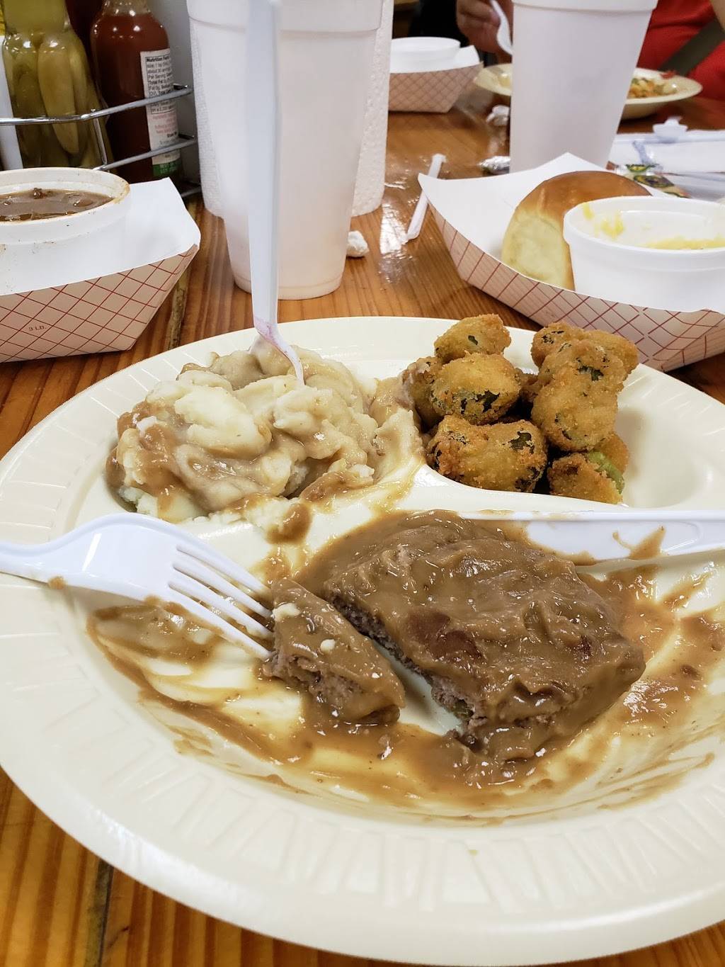 We went for a late lunch. There were several entree choices. I had a fried pork chop which was really tender and moist. Hubby had chicken fried steak which he said was great. There were many sides to choose from, along with bread options. You can also order off the menu if the steam table options don't appeal to you. And those desserts.....looked heavenly but I had to pass because I was already stuffed.