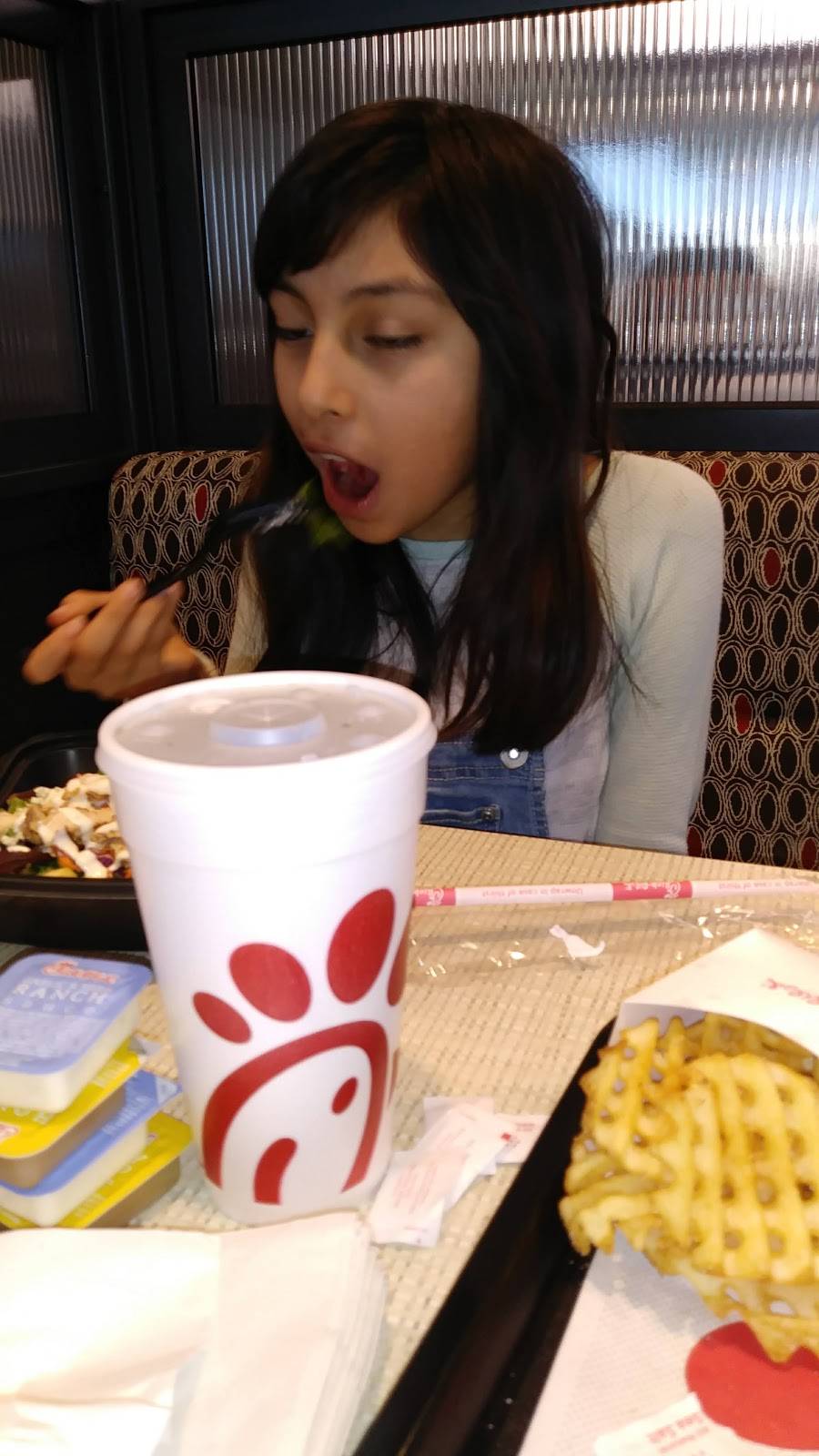 I will now become a CHIC FILET customer. The large waffle fries and lemonade were very good. The spicy chicken sandwich is my favorite.