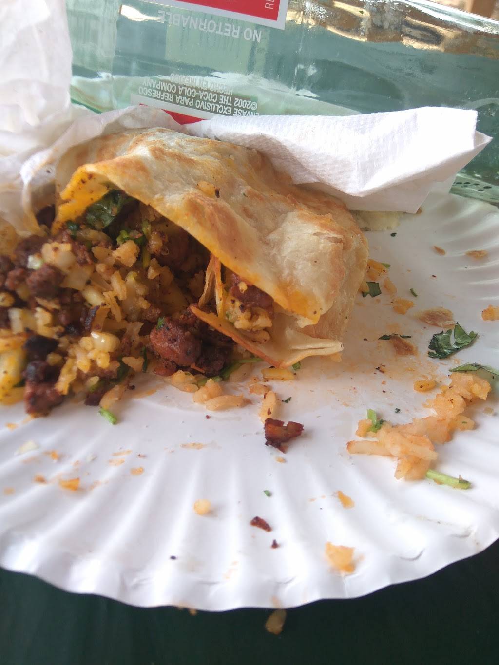This place has great homestyle tacos. The first time I came the lady gave me a free chicken taco just because it was my first Time. If you're driving by it's a must-see. Energy drinks and various drink options available and they accept credit card.
