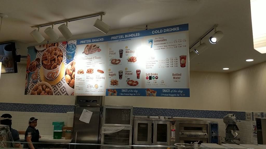 This Auntie Anne's is inside the airport past security. They are always so friendly and sweet. Love this place...coffee, breakfast, and ofcourse the Cinnamon buns are amazing!!