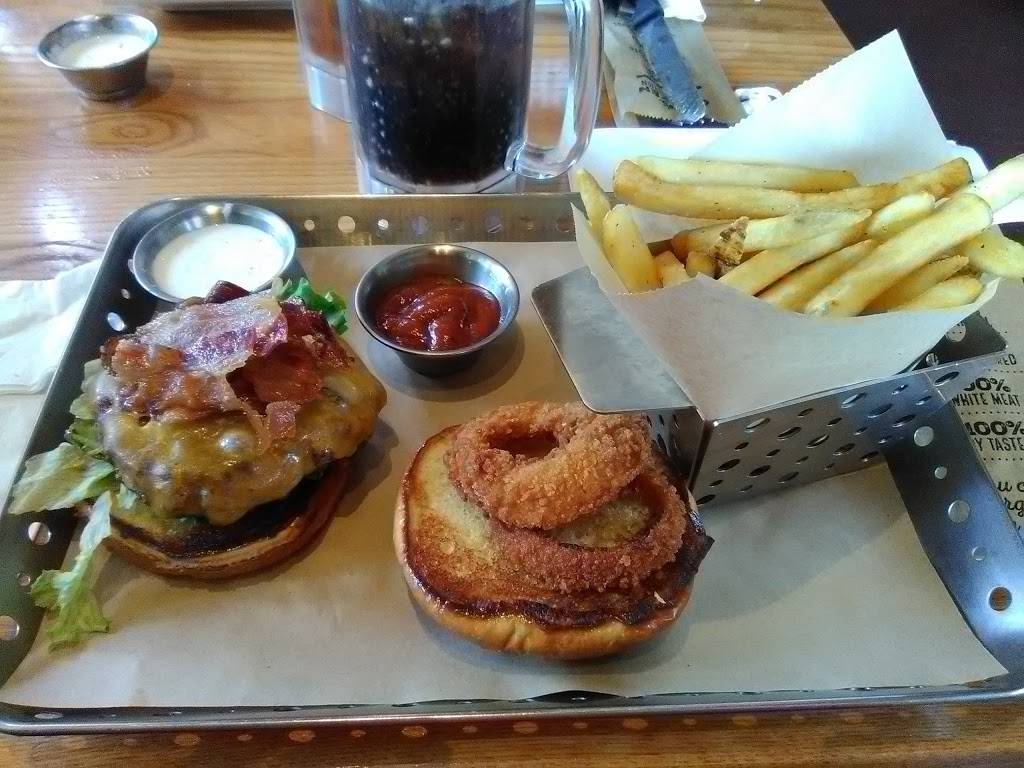 I had the loaded boneless chicken. It seemed to be smaller shaped crispers which I like. The portion was huge, enough for 3 people. It did look overwhelmingly greasy but it did not taste like it. The cheese melted nicely and it was good but a bit heavy and only could eat 2 pieces. I also had the basic bacon burger. The patty was grilled perfectly to a medium, it had a nice crispy char but was super juicy and not over cooked. It had enough bacon and red onions with pickles made it a very delicious burger. The fries were okay, the seasoning was good but they could stand to be a bit crisper. After a disappointing trip to Red Robin a few days ago, this burger hit the spot.