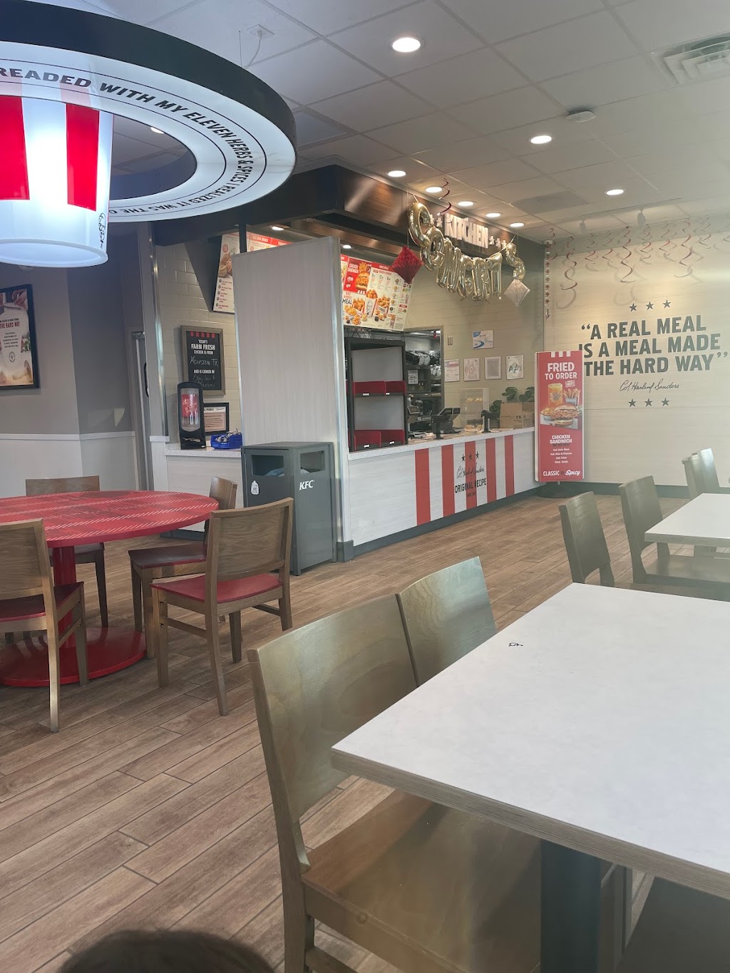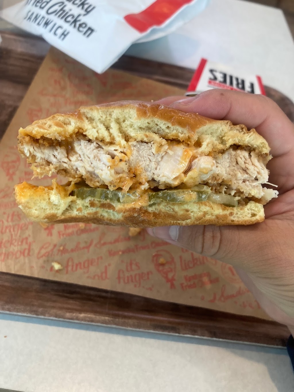 The food is alright. This place is clean. The fries were alright. Drink selection could be better. Like adding a fresh lemonade. That’s on the company though.About the company, they need to make a healthier option, like a grilled chicken sandwich. Overall it’s nothing special, based on this meal I wouldn’t want to eat KFC again. The food is not terrible, it’s just that it’s not something that would keep you coming back for more.
