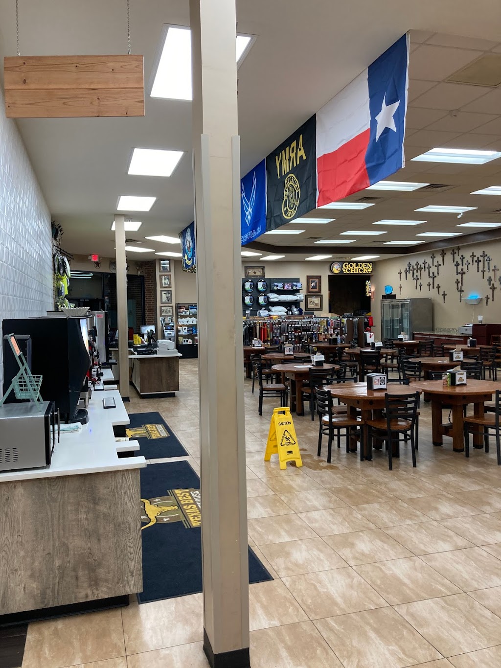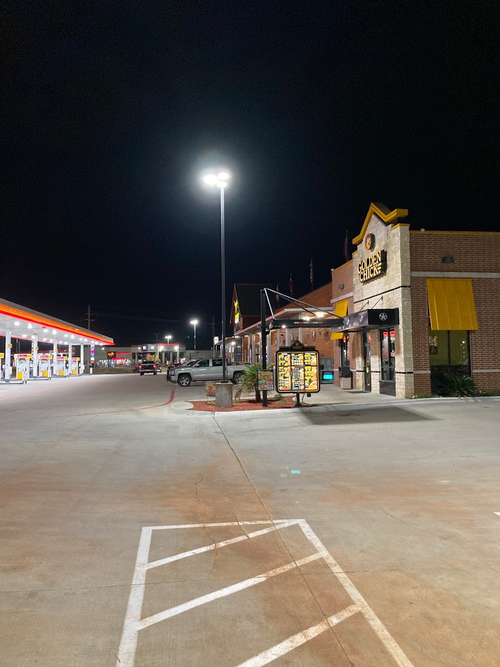 Nice truck stop for truck drivers . Nice parking for big trucks plus def fluid at the pumps . And they have really nice and clean restrooms and they have 3 restaurants here golden chic, Steak ‘n Shake , Texas best bbq. Also a drivers lounge. Need I say more !