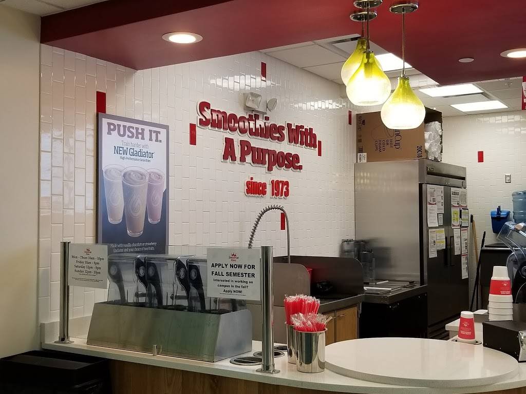 Quick compared to the other Smoothie Kings on campus. Friendly employees and tasty smoothies!