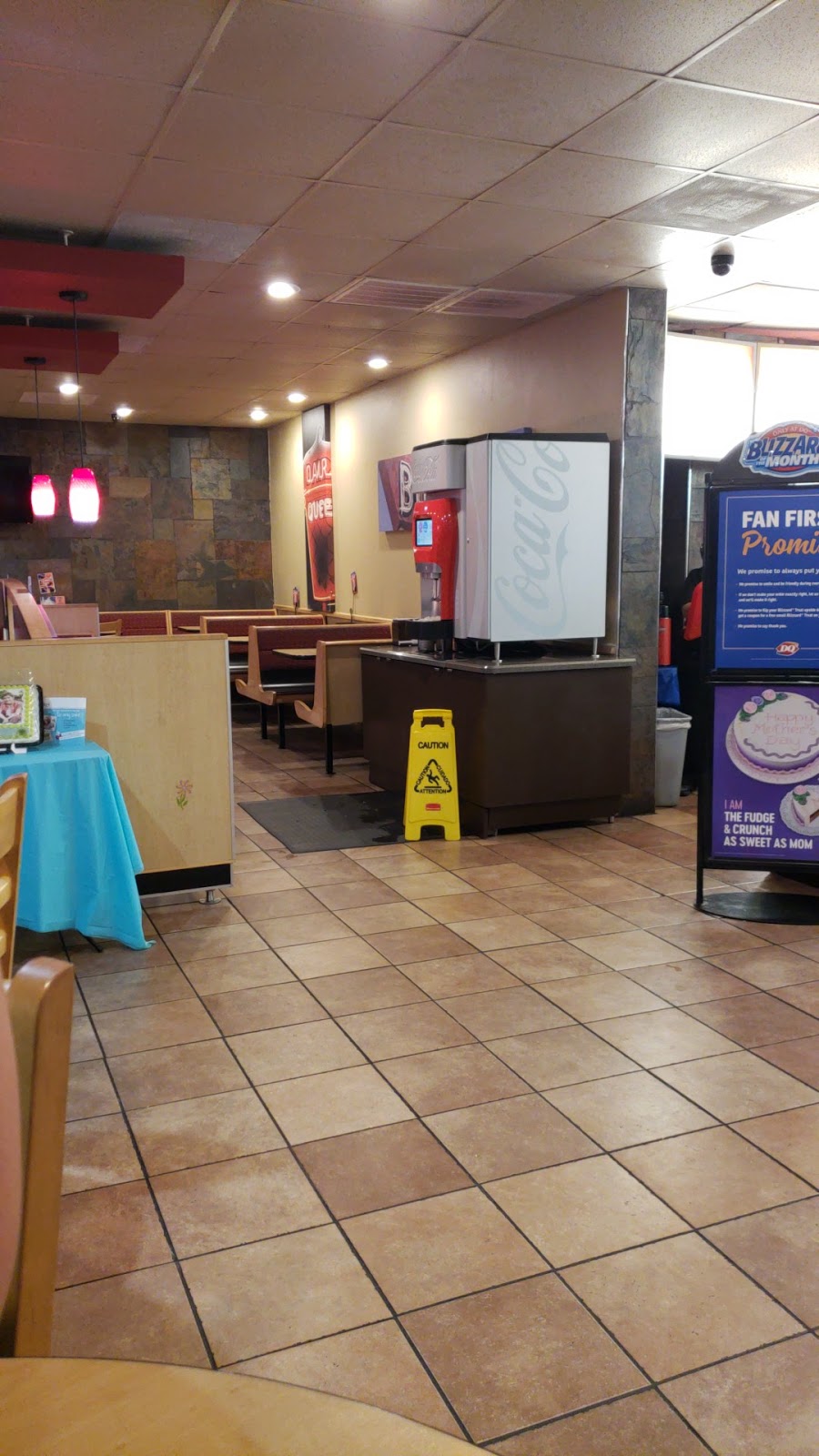 My blizzard was perfect. Restroom was clean. When I checked my change, it was incorrect. That was corrected quickly and with a nice apology.