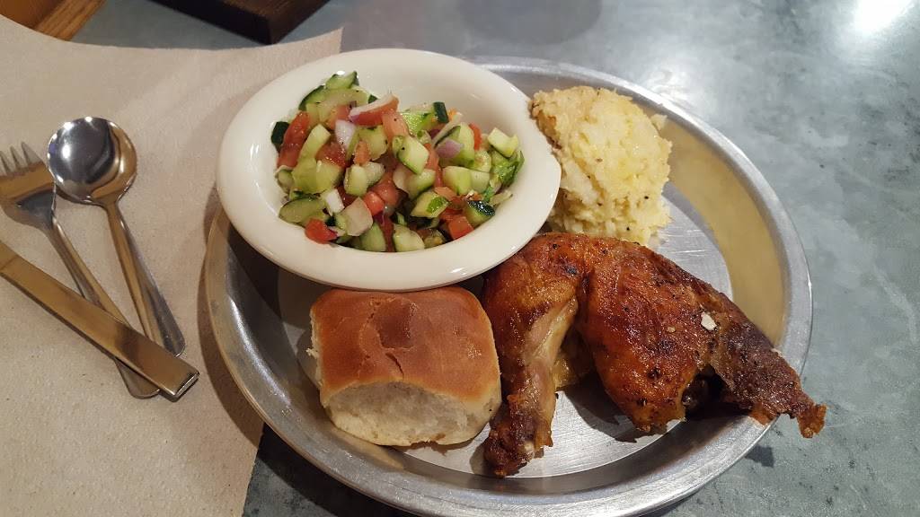 The most wonderful thing about this place is you can get a meal that's fairly healthy, such as rotisserie chicken, with sides that you don't usually get at fast food places like cucumber salad and a less than spicy but flavored rice. Now, they do have a cobbler that is so good it must be sinful and of course this is a stray from the healthy thing.