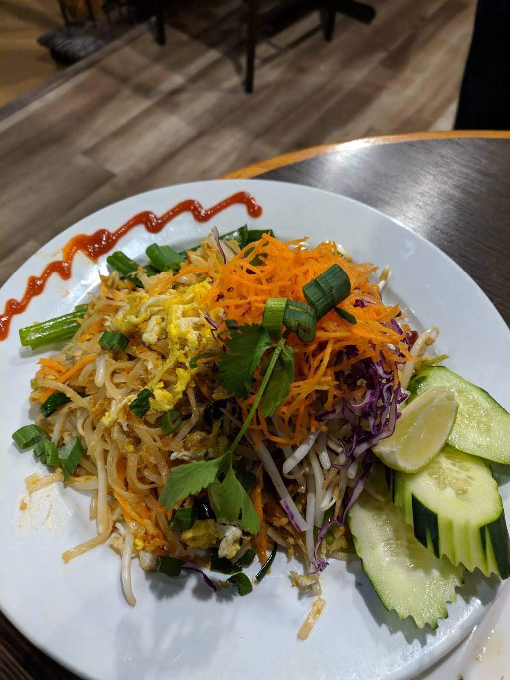 This was the first time I been here and I didn't check any reviews before I went. So inside was nice and clean. My wife and I shared a dish of pad Thai which was ok not great. I saw some other dishes people have and they looked better. If I came back I would know what to get next time.