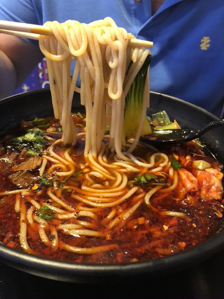 纽约休斯顿超火的花溪王米粉来达拉斯啦!这是我一周之内第二次来吃了!汤味道特别好喝,老板说他们家的汤都是不加味精之类的添加剂,喝完不口渴!汤里面有泡菜和番茄,酸辣爽口。米粉也很劲道,我吃的比较慢也没有泡烂。羊蝎子很好吃,没有膻味!酸奶特别推荐,有小时候喝的那种玻璃瓶酸奶的感觉!