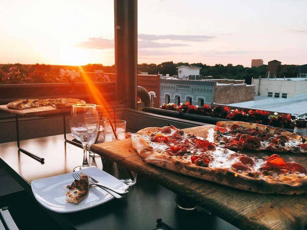 Really loved the rooftop seating, it was perfect for good weather to enjoy some fresh air. The food was amazing, loved the pizzas! The mozzarella tastes so fresh and the calamari rings were really crunchy, just how I enjoy it. We were given free bread and a tomato based dipping made with olive oil and a mixture of olives, it was so delicious. The pasta was bland and disappointing but I still give it four stars for the amazing pizza, calamari and overall experience