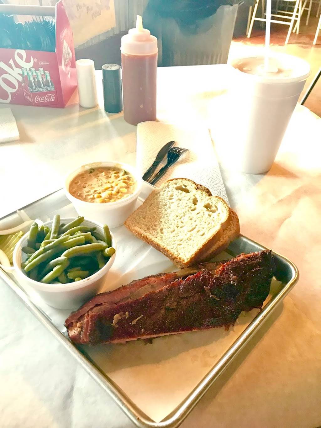 Simply great. Our first visit. We had one pound of their chopped beef brisket, to go. It was Texas BBQ, the way it should be. It was tender, flavorful, savory, and only slightly sweet -- not "candied" like so many syrupy services are. All the fixings were included -- pickles, onions, sandwich bread, and lots of extra sauce. I forgot to ask for sliced jalapeños. It was great experience overall. Quick and pleasant service, with a smile. Reasonable pricing. The interior and the seating were nice -- and an outdoor seating area, too. Received a smile and a wave and a "Thank you!" as I was leaving Pleasant folks. Great barbecue. Five stars.