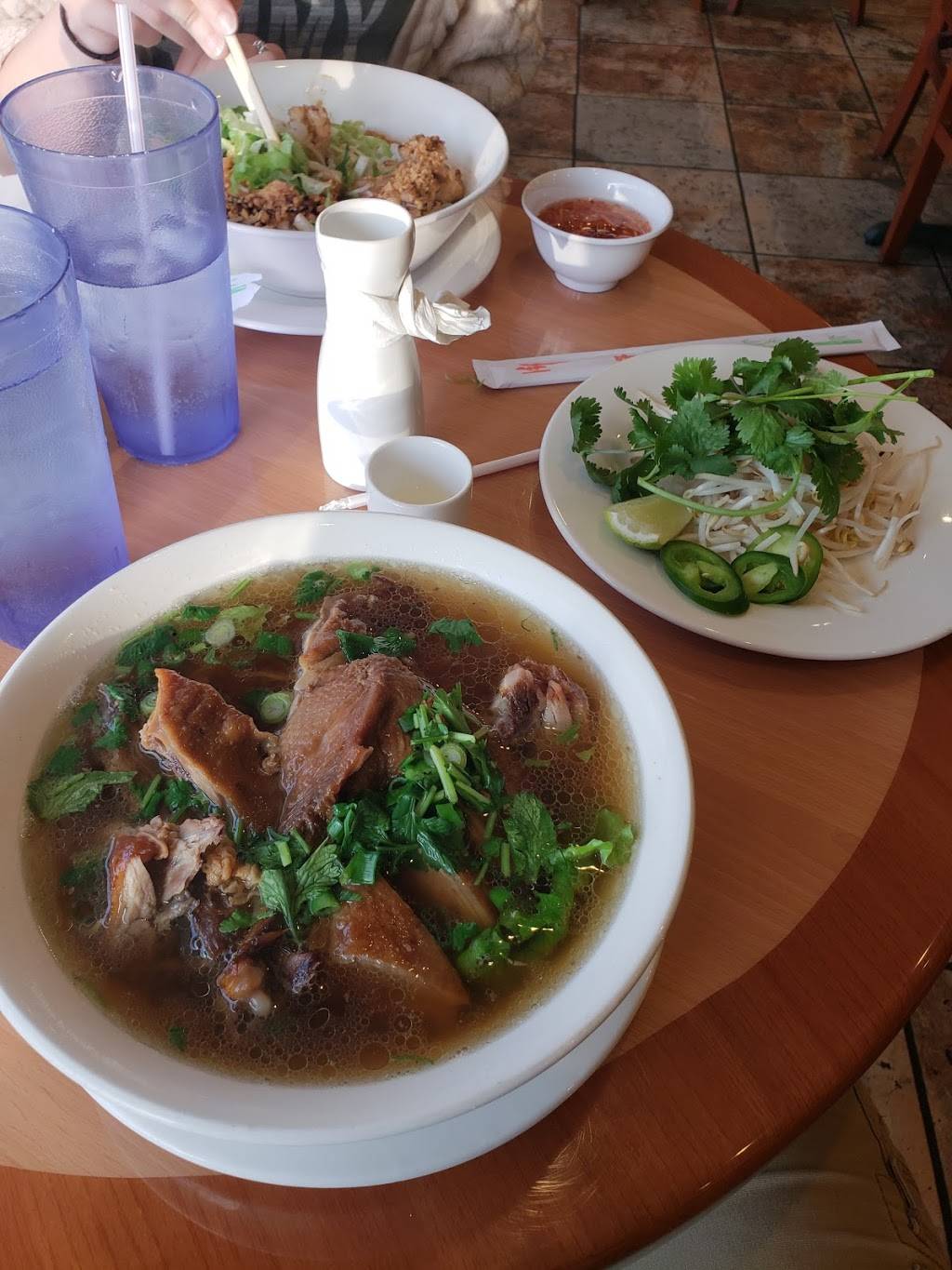 I usually order pho from here. The broth is really delicious and seems very low in oil and fat content. I have tried the beef and chicken pho. Both are yummy.