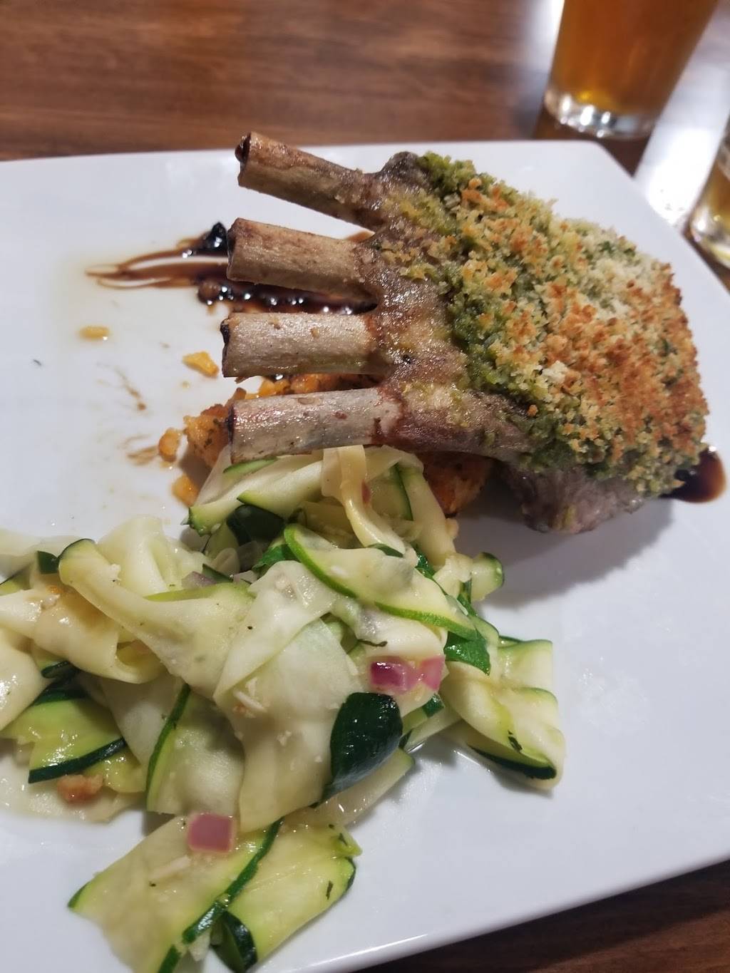 The place is definitely upscale. Prices are very fair for the portions you get. Ate there early evening 5p-6p yesterday (01/25). I ordered the Pecan Crusted Chicken with green beans and split potatoes and was not disappointed by the size of the chicken nor it's flavor. The same could be said about the green beans and potatoes. My friend ordered a house salad that had the freshest vegetables.The piece of chicken was enormous almost took up the entire plate surface and was lightly covered with creamy gravy. Google maps has this place pinned wrong. The 5 and half month old place is the first place in the Park View plaza coming in from the S. Seguin Rd/Rte 725 entrance. Our server Justin was cool and friendly. This place also has a patio that looks out to the road but is nicely laid out with low glowing string lighting and and plenty of patio tables and chairs and also have a few heaters for those cooler evening get togethers.