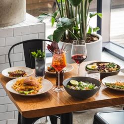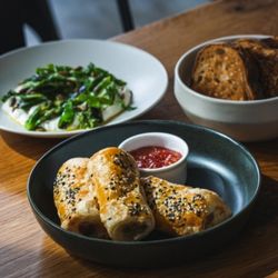 Just opened in Bishop Arts and was excellent. We got the gin spritz and then shared the Brussels, the Caesar, the burrata and the Thai curry.