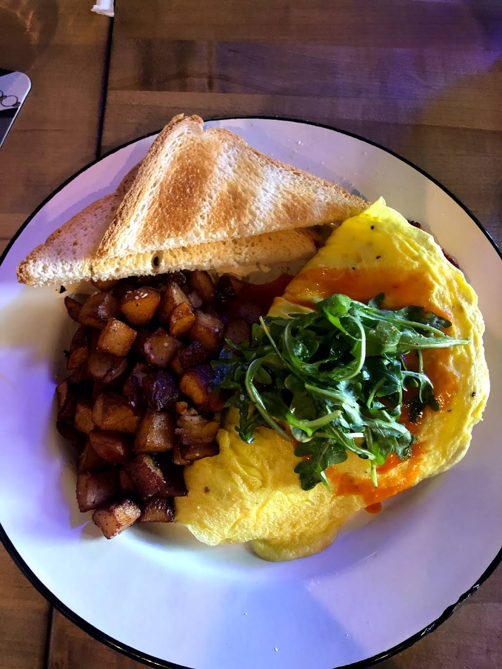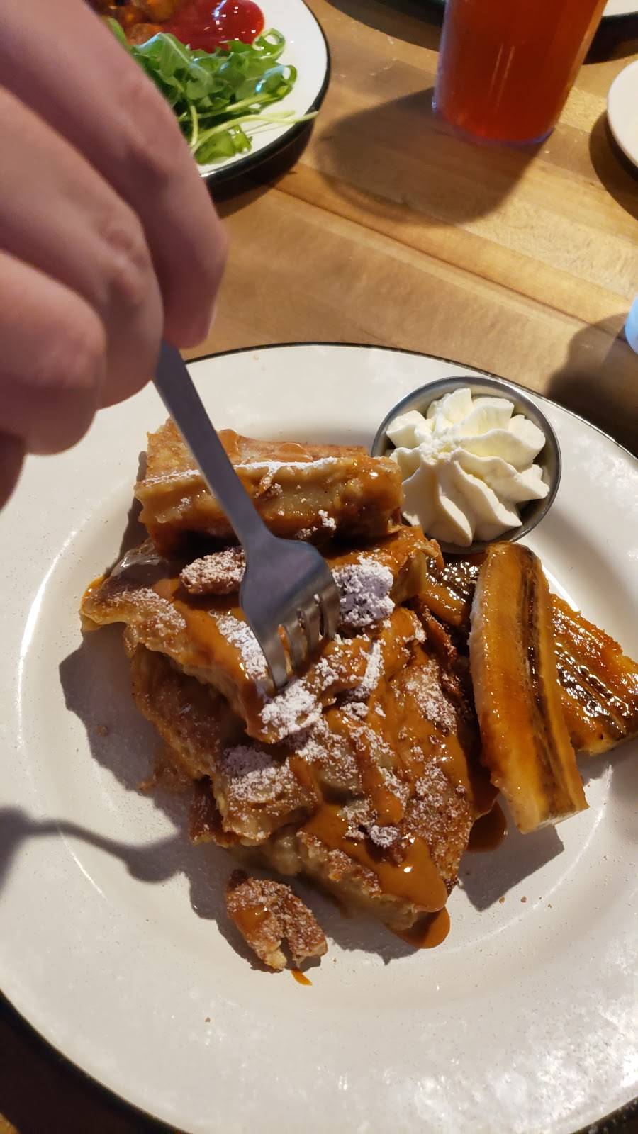 Came here on Sunday for brunch with a meet up group and really enjoyed everything. Maple Landing has only been open a few weeks, but already has a great menu and an awesome selection of beers and spirits. Our table was 10 deep, but we had three servers accommodating us. They have happy hour all day, so the drinks were flowing around the table. I decided on a whiskey with ice. It was super smooth and after having one of those I got their aged whiskey old fashioned. It had just a hint of sweetness and it was super smooth.