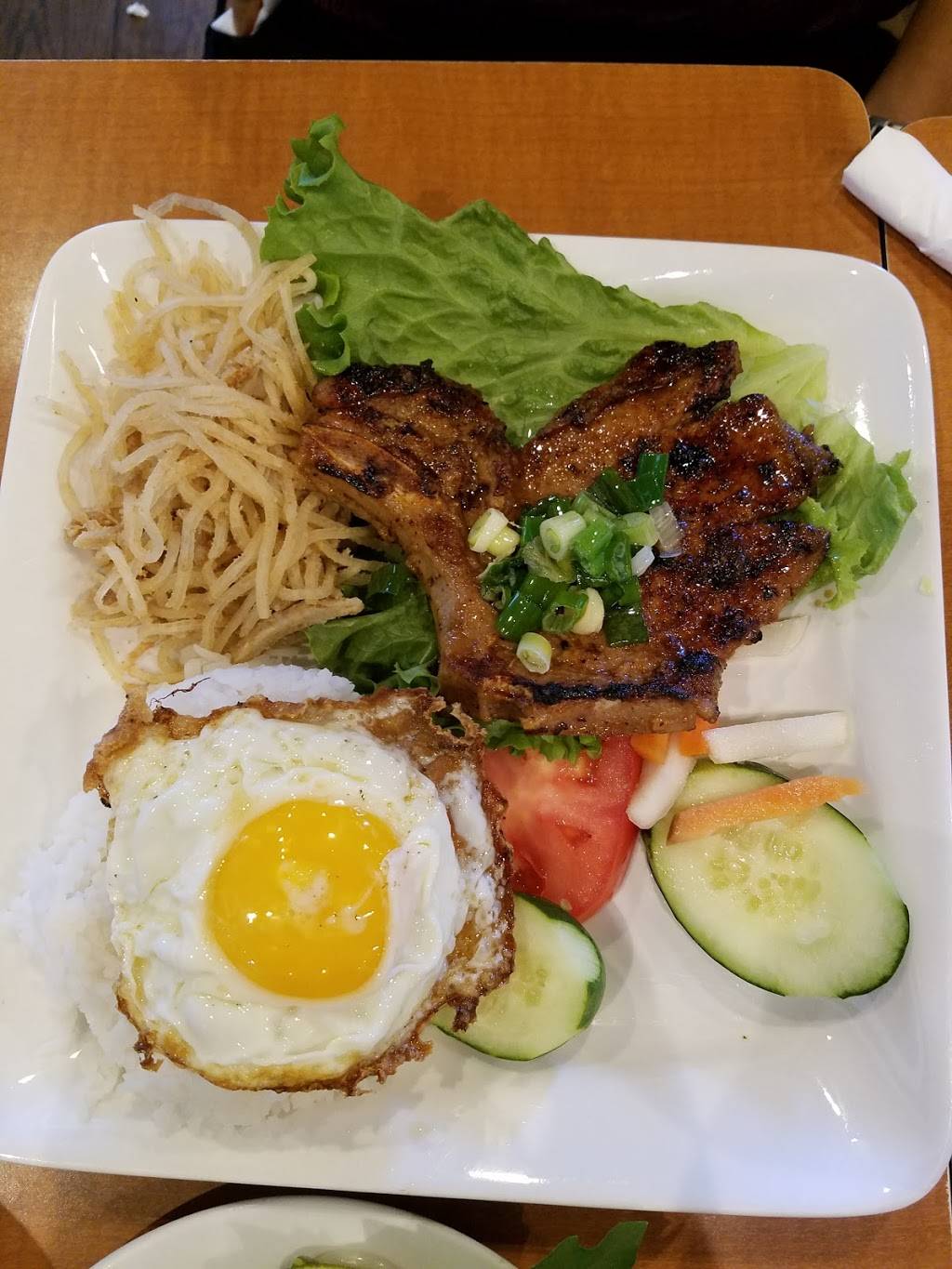 My family first time here today, the restaurant extremely busy, my friend try noodle soup, it's was good. I ordered rice with shaking beef I love it. We will come back to try other dishes.