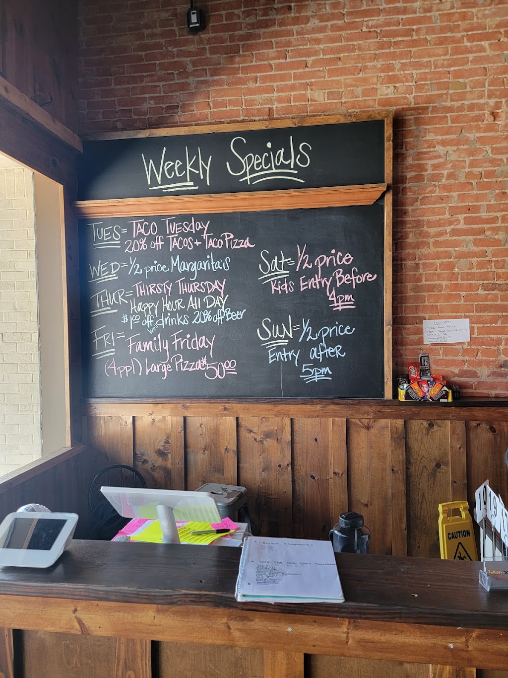 Loved the taco pizza! Haven't seen it on a menu since we moved here from the Midwest! The entrance fee might seem steep but there was so much to do and there's no time limit. You can even leave and come back the same day. Good local craft beer selection, fun cocktails and frozen drinks. And super friendly service! With better service, better prices, and waaaaay tastier food, this will be our go-to over other neighboring free play arcades!
