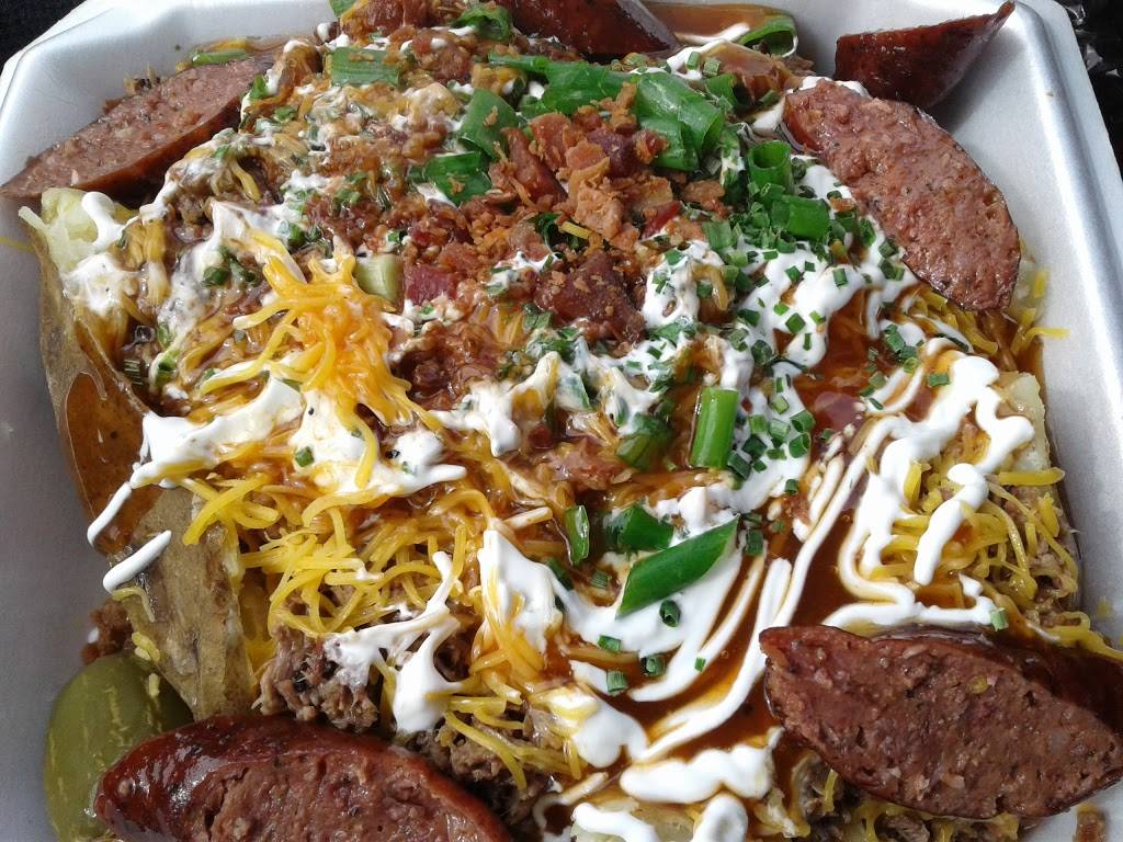 The loaded Baked Potato was amazing! The place is tiny but they were super busy and the wait time wasn't that long. I got a loaded baked potato with chopped beef. It was GIANT and only $10 It had Chopped beef fresh chives, cheese, bacon, and bbq sauce. I had leftovers the next day! We had a 2 year old with us and she was wandering around but the staff was friendly and didnt seem to mind.