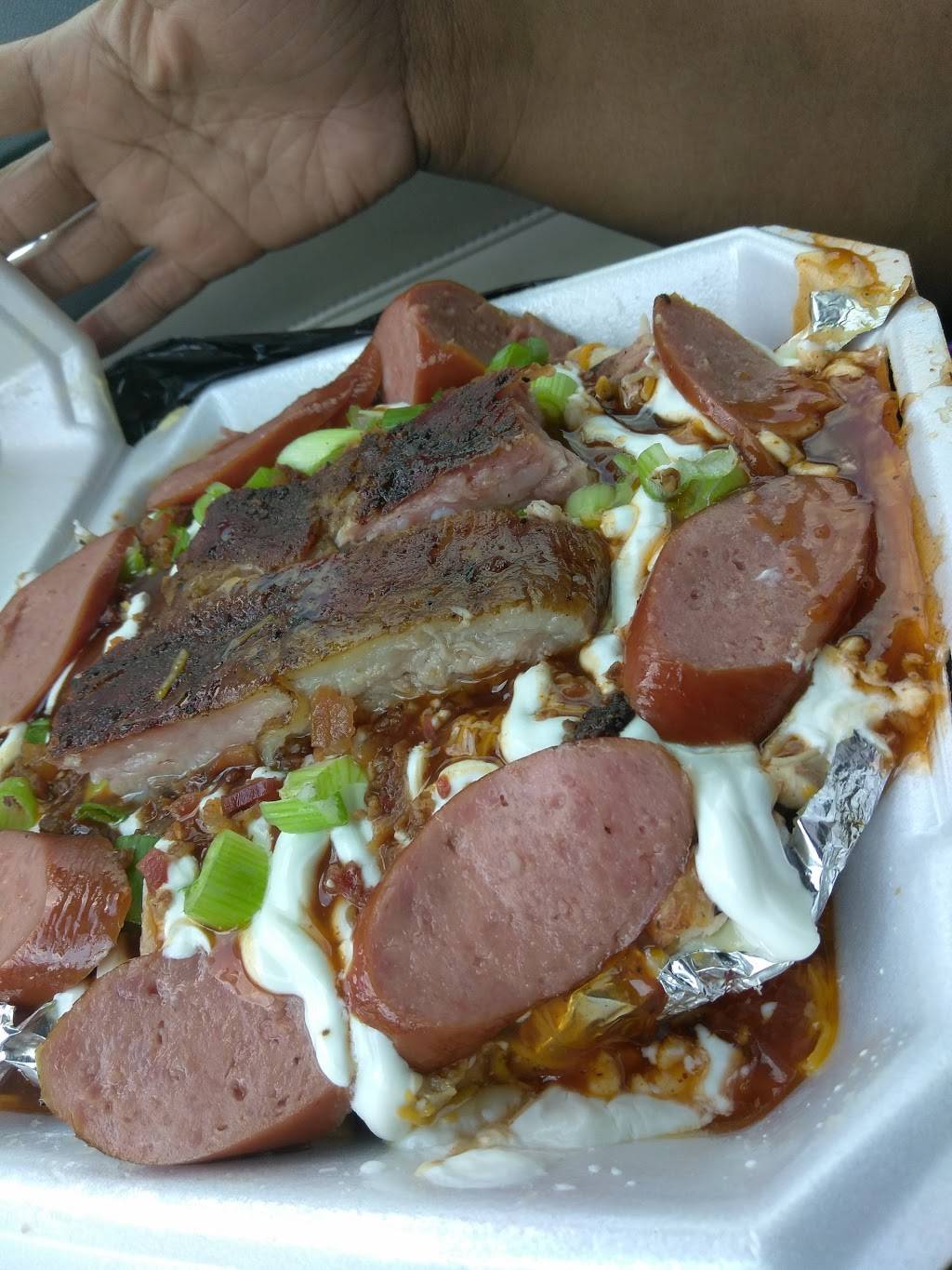 After running some errands I was very hungry. I kept smelling BBQ so I share this information with my husband. He was trying to convince me to eat fried chicken steak at another restaurant. I suggested that he take me for BBQ and he go get the fried chicken steak. We went for the BBQ, and it was the BOM! I ate two chop beef BBQ sandwich and he a dozen of those East Texas sausages. My stomach is so happy.