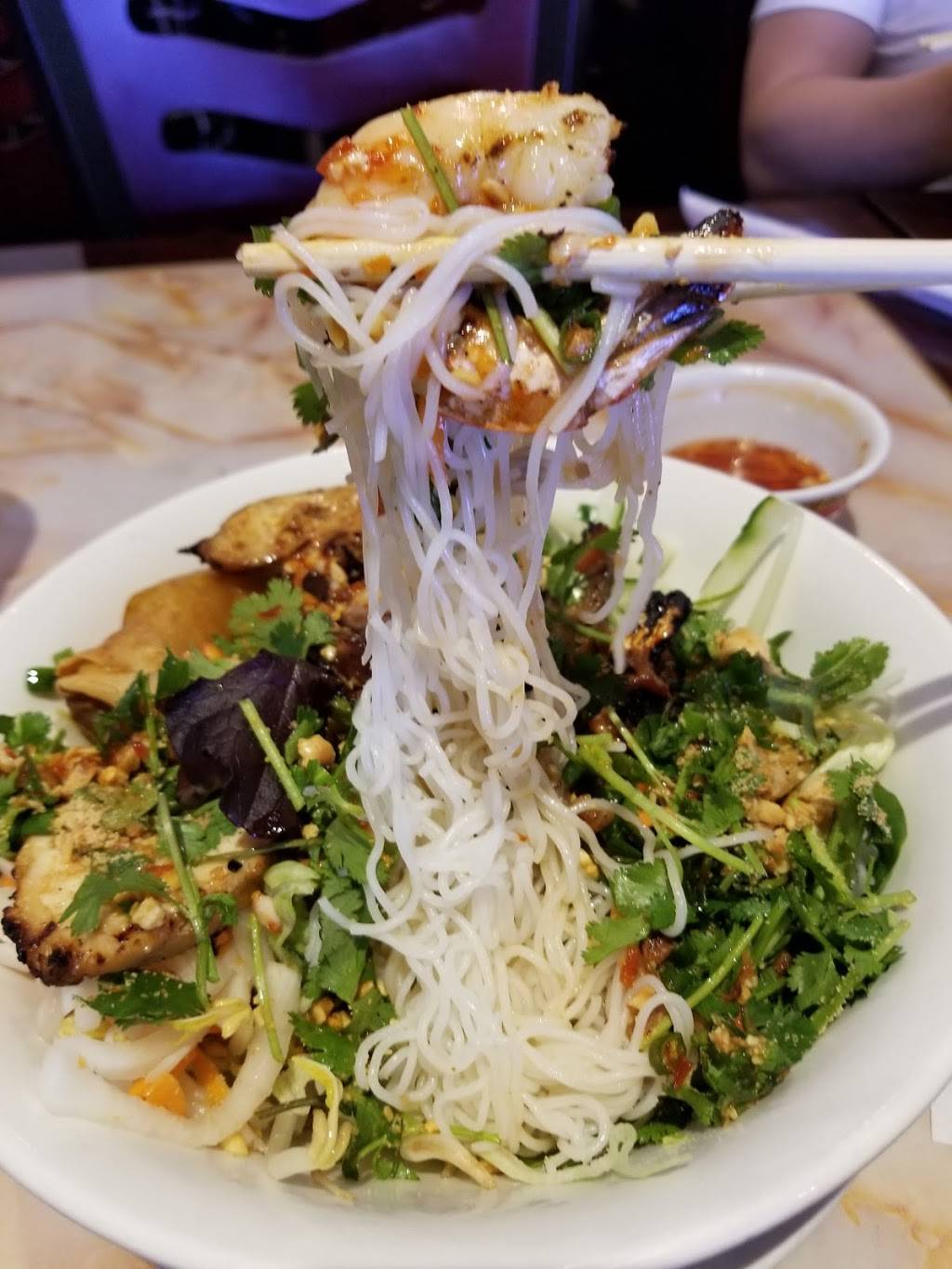Introduced to this place by long time Best Friend several years ago, have stayed consistent in going back at least a couple of times during the year, dining in and calling in pick-up orders. Pho Ga & Spring Rolls with Extra Peanut Sauce are my go-to's. Even during holidays and busy lunch rush hours they serve pretty quickly. Prices are very reasonable and soup is generous in portions.