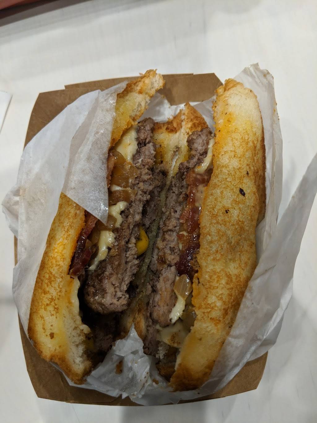My family and I love this place!!! Food is fantastic! We got the “cowboy”, the “original”, fried pickles, sweet fries and 2 grilled cheese kids meals with fries and tots. It isn’t cheap though. We spent $45. Kids gobbled everything up and so did me and my husband! The major bonus for us is that the kids can run and play while we sit nearby on the patio. We happened to go today while it was cold and rainy but our kids still wanted to play and they had plastic covers on the patio and heaters overhead. Was still cold but today was an unseasonably cold day. Such a great place for families!