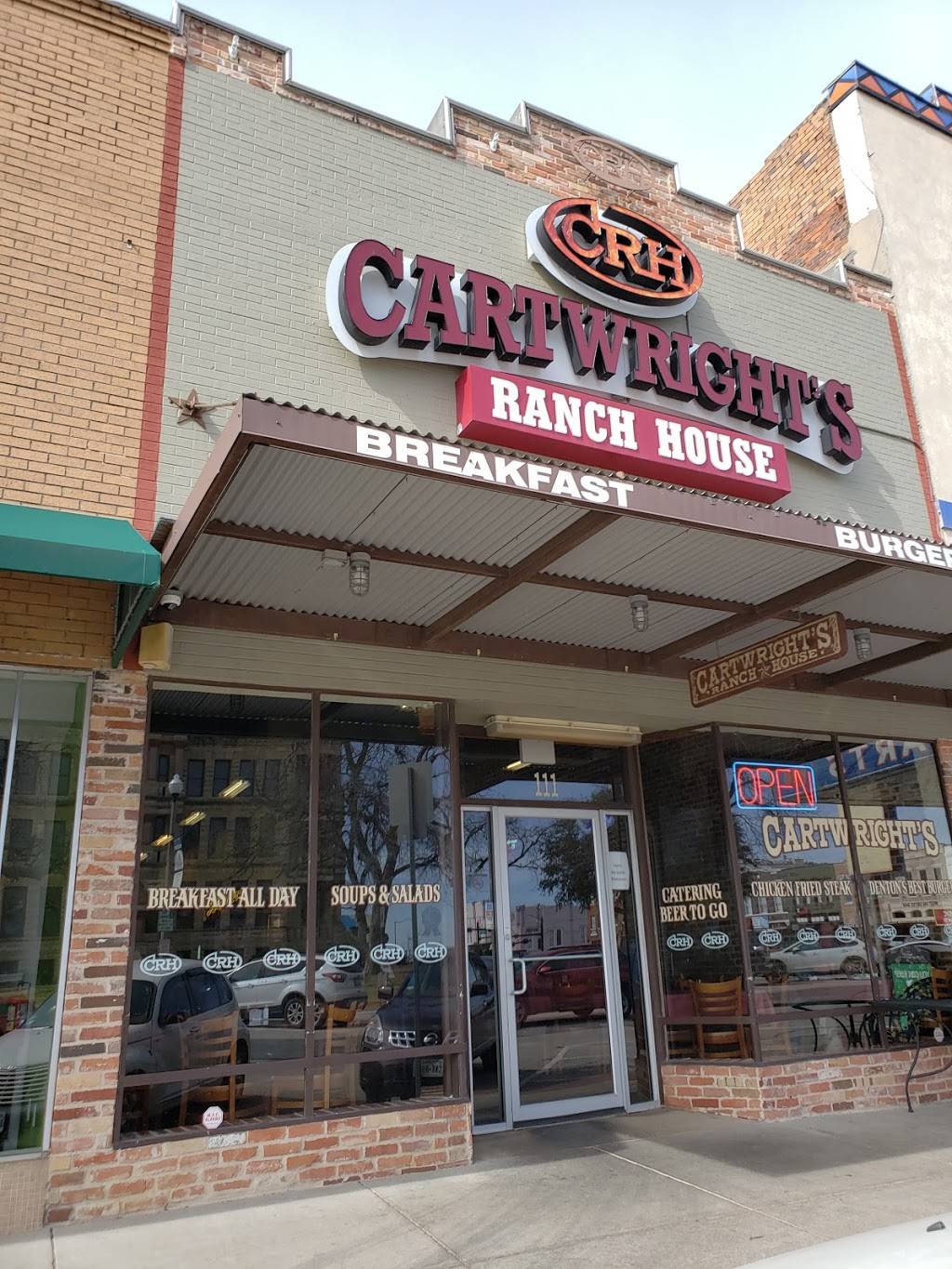 Cartwright's Ranch House on the square in Denton, TX is such a great place. There is so much character in the old building. I love the old brick, murals and signs on the walls, high ceilings. The food is delicious. Breakfast is served all day, but there are many options for lunch or dinner, as well. Prices are very reasonable and they are open seven days a week. The only drawback for us is the parking issue. Parking is available on the street and there are parking lots a block or so off the square.