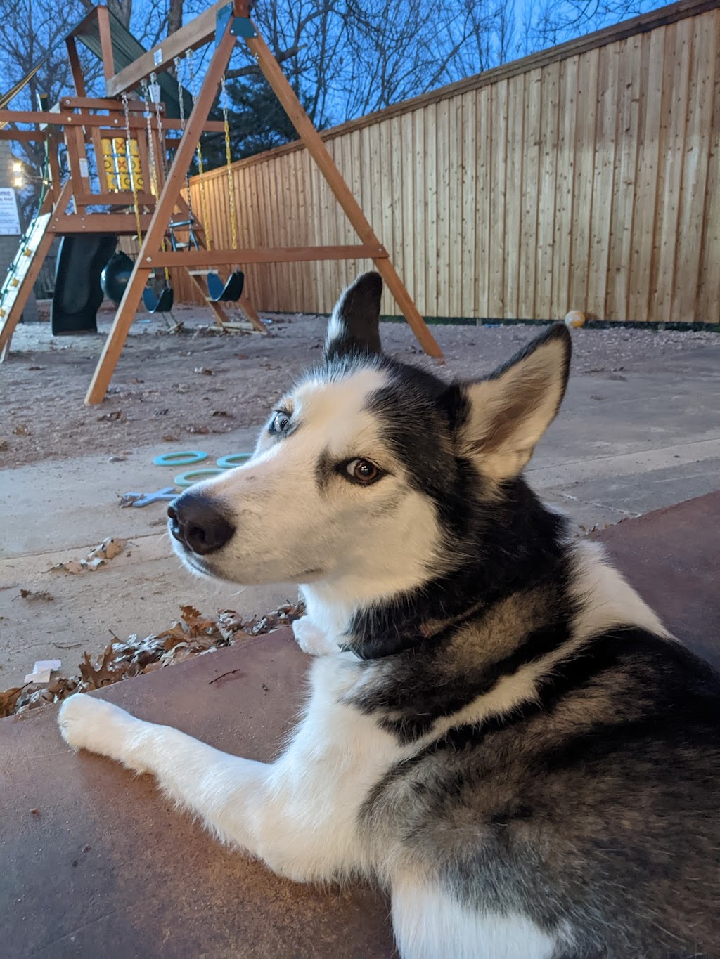 Service went above and beyond! I called Alma to ask if dogs were allowed on the patio, and the manager regretfully informed me that the patio was restricted to service dogs only... But they called me back two minutes later and notified me that Ennis had recently passed a pet-friendly patio ordinance, and dogs actually ARE allowed on their patio! Such a kind thing to follow up and make sure I had the correct information. Our husky enjoyed the patio (that's the kids' playscape Alma has in the background).