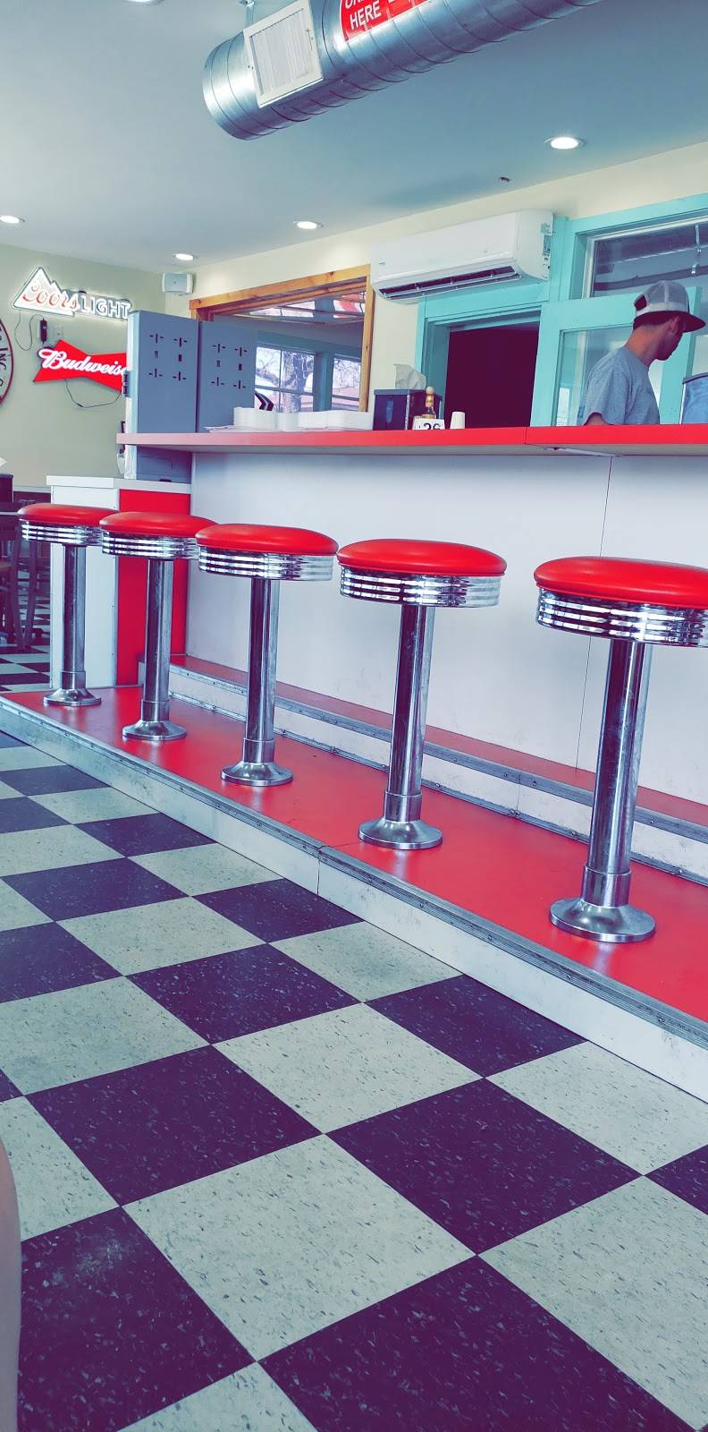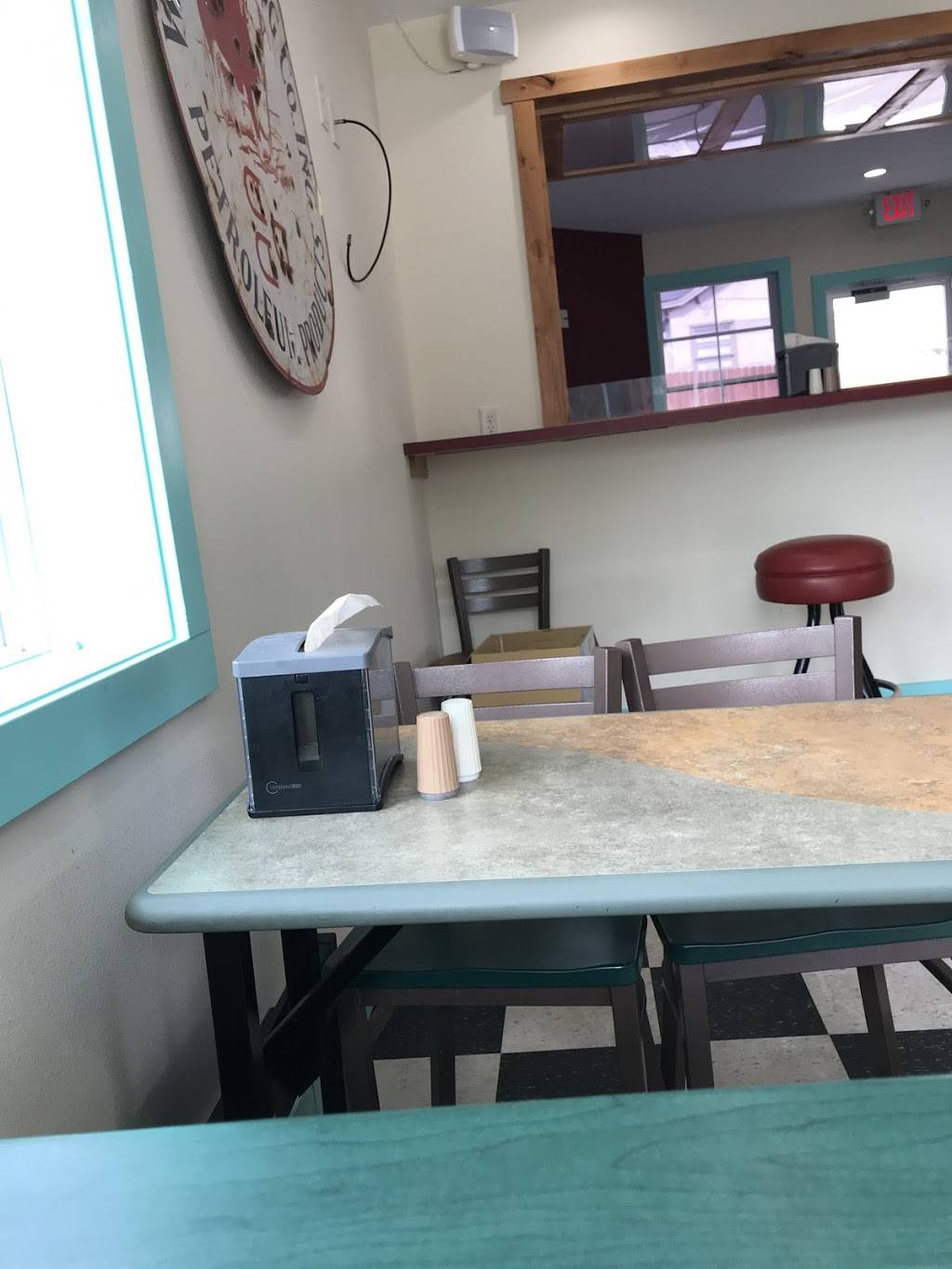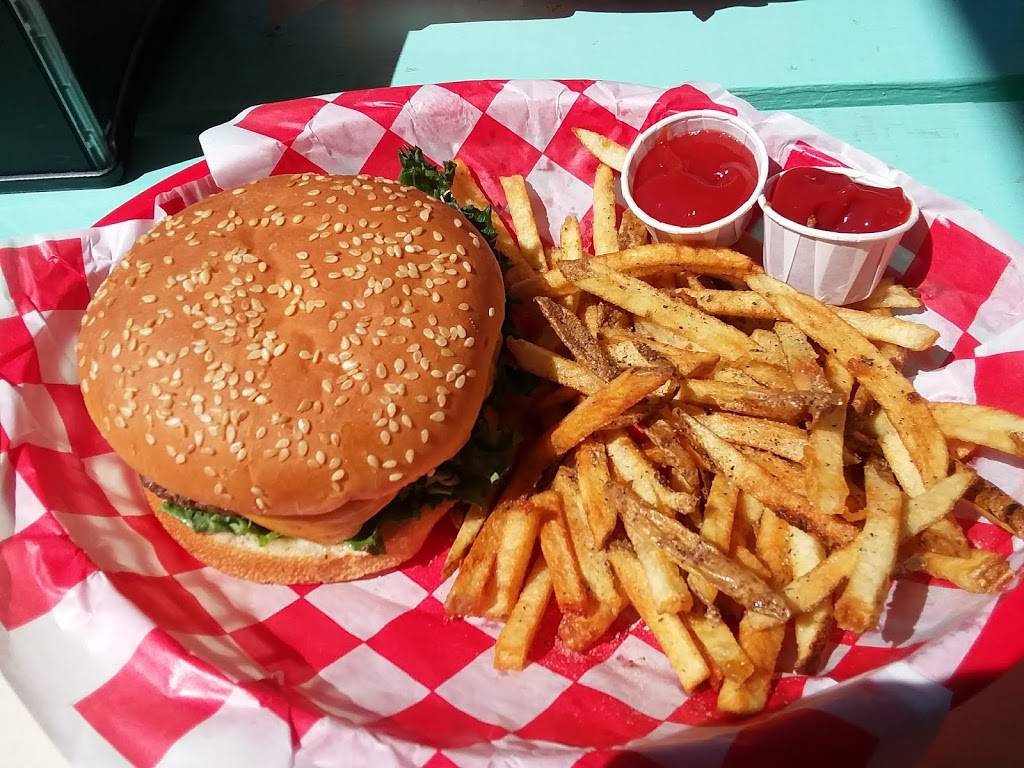 Tasty little hometown joint where burgers, good service, smiles, and fun moments can be made and experienced. This quiet, unassuming gem is seeks to be discovered by catching passersby with a charming vintage, pale green chariot on four wheels. Seating inside or outside allows a choice to seek shelter from unfavorable weather providing a cozy retreat, or a lovely way to enjoy ideal weather catching a breeze on the patio.