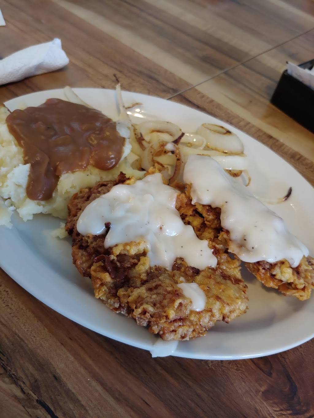 Very cozy place!! Lots to look at. Had a good chicken fried steak with mashed potatoes and gravy. Had a BUD LIGHT in a frosted mug !! Nice touch !! Visited local antique shops to walk off lunch. Daily specials !! Had my mind set on CFS but daily special was fried catfish !! ????