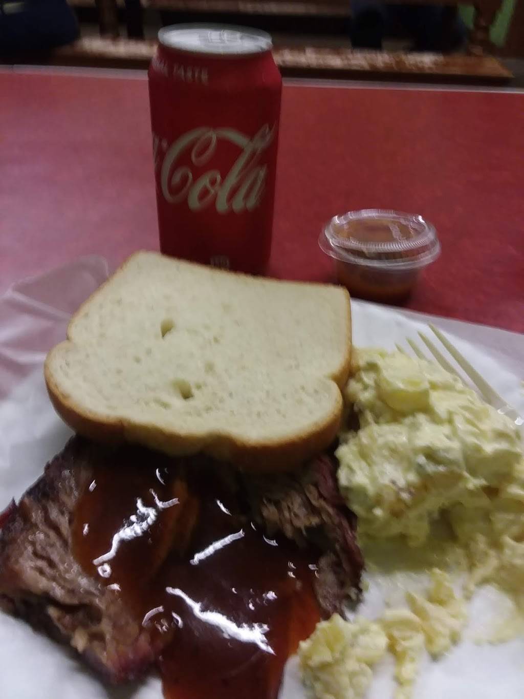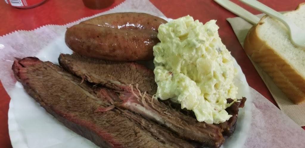 Best brisket and sausage ever. With 3 types of potato salad. You have to try the peppered vinegar with your sausage links. Very tasty.