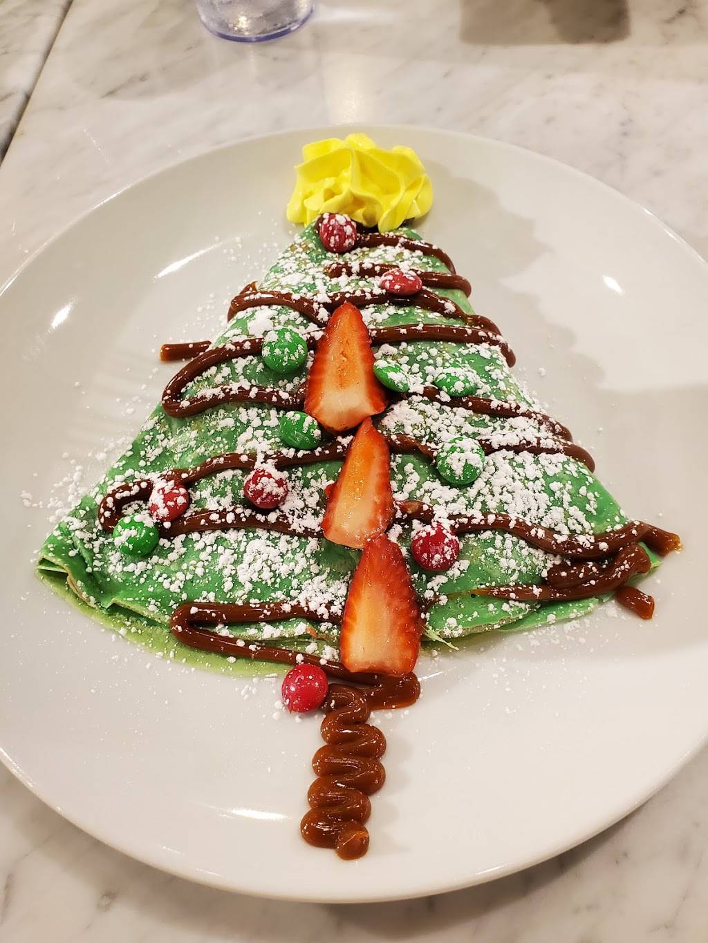 Love this cute place. Crepes and waffles are good note alchol Sunday served after noon. Stays open late so have eaten late at night and early lunch. Great options. Outdoor seating or inside seating.