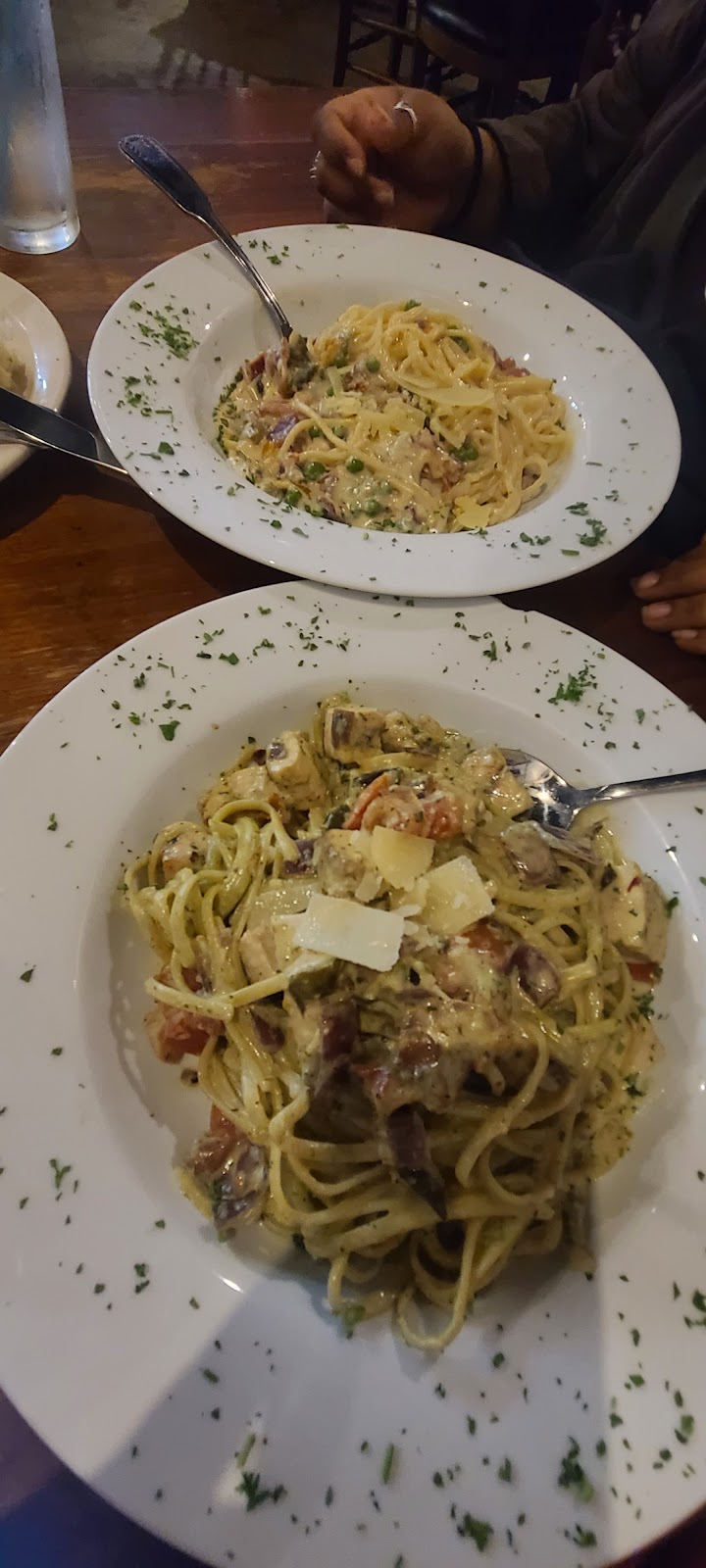 As usual food was delicious! Our server was very rude and sat most of the time we were there. Apparently she thinks talking about the customer's is ok. At least have enough respect for yourself and courtesy as a server to wait until your out of earshot of the customer. She told another server "that her lady at table 20" was (I'm not going to write her list of complaints mentioned with my mother or me) . I'm not sure if she was ever taught any manners, certainly didn't have any today. I've never had a complaint like this. Common sense and common courtesy should be used dealing with the public. Unfortunately she has neither.