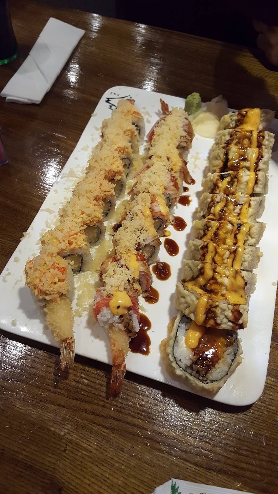 Ok so normally I don't like seafood but their eel sushi was so good! All their food was very delicious. Plus to be honest the price is pretty good. The desert came out on a lovely plate decorated nicely I loved it. Plus the waiters were amazing. They knew when to refill drinks and always checked up on us. Definitely my #1 Japanese restaurant.