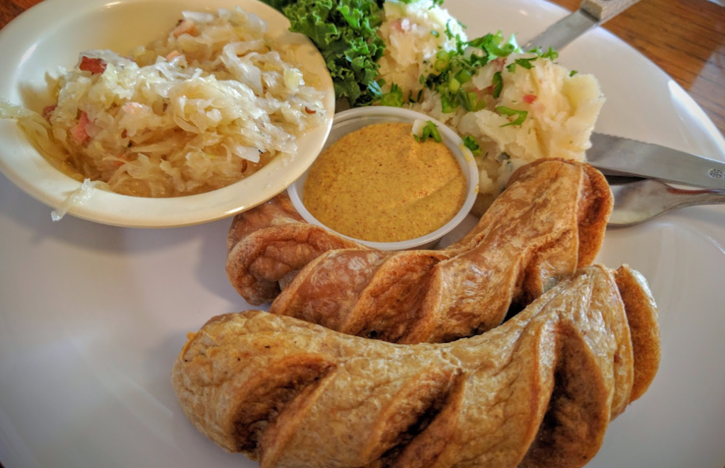 Now I ate potato salad all over Germany and I never had one that was made from mashed potatoes. So this wasn't that German. The sauerkraut might be great for someone that grew up in the USA but for me it was a little flat.